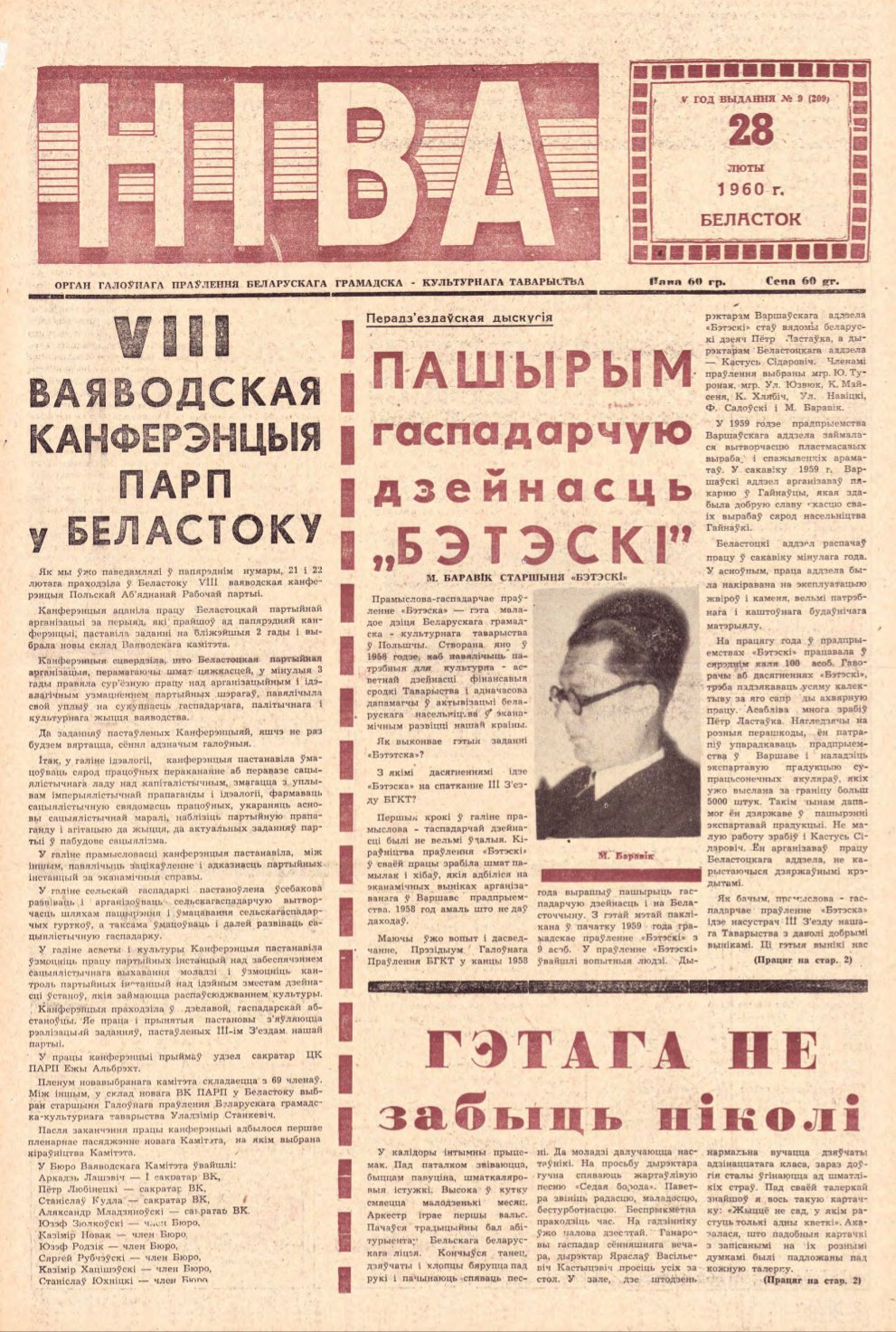 «Ніва» — штотыднёвая газета, якая выдаецца на беларускай мове ў Беластоку. Газета была заснавана ў 1956 Беларускім грамадска-культурным таварыствам. Зараз яе выдае Праграмная рада тыднёвіка «Ніва». Газета асвятляе штодзённае жыццё беларусаў у Польшчы, дзейнасць грамадскіх арганізацый, друкуе матэрыялы па краязнаўстве, змяшчае артыкулы, прысвечаныя актуальным падзеям на Беларусі. Болей »