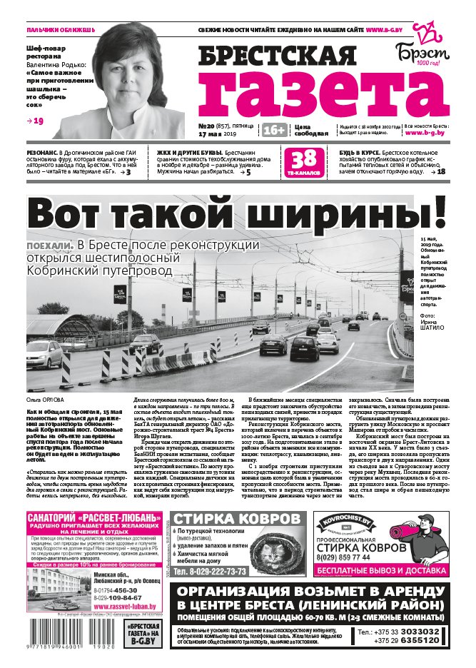 «Брестская газета» на региональном рынке СМИ позиционирует себя как одна газета для всей семьи. При выборе тематики публикуемых материалов мы руководствуемся принципом: ШИРОКИЙ ВЗГЛЯД, ВНИМАНИЕ К ДЕТАЛЯМ. При этом фундаментальной основой всех публикаций является: ОБЪЕКТИВНОСТЬ. Основными составляющими в содержательном плане являются местные новости, материалы социально-бытовой, экономической и правовой направленности. Болей »