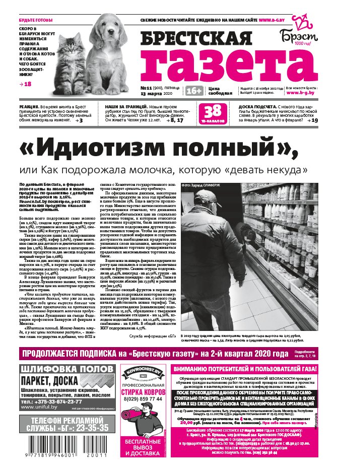 «Брестская газета» на региональном рынке СМИ позиционирует себя как одна газета для всей семьи. При выборе тематики публикуемых материалов мы руководствуемся принципом: ШИРОКИЙ ВЗГЛЯД, ВНИМАНИЕ К ДЕТАЛЯМ. При этом фундаментальной основой всех публикаций является: ОБЪЕКТИВНОСТЬ. Основными составляющими в содержательном плане являются местные новости, материалы социально-бытовой, экономической и правовой направленности. Болей »