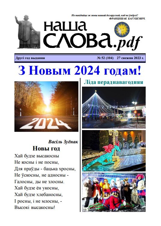 «Наша слова» — штотыднёвая газета. Змяшчае інфармацыйныя, публіцыстычныя, гістарычныя, палемічныя, агітацыйныя і мовазнаўчыя матэрыялы па праблемах беларускай мовы і культуры. Болей »