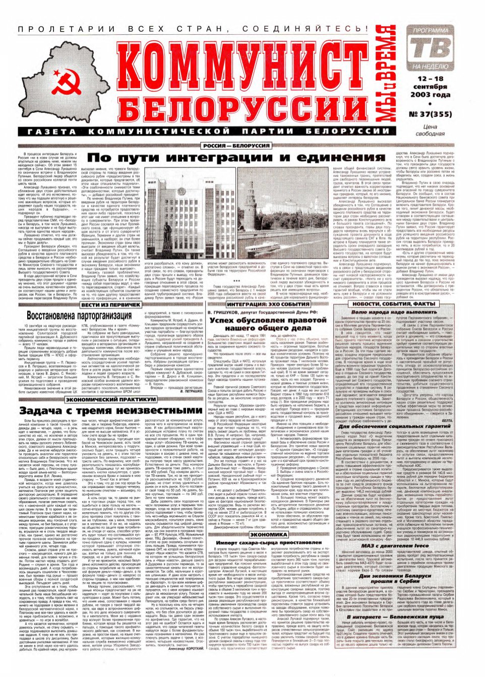 «Коммунист Белорусси». Мы и время. Газета Коммунистической партии Белорусси. Редакция может не разделять взгляды своих авторов. «Коммунист Белоруссии. Мы и время» не имеет возможности вести переписку, отвечать на письма читателей. Рукописи не возвращаются. За достоверность фактов отвечает автор. Болей »