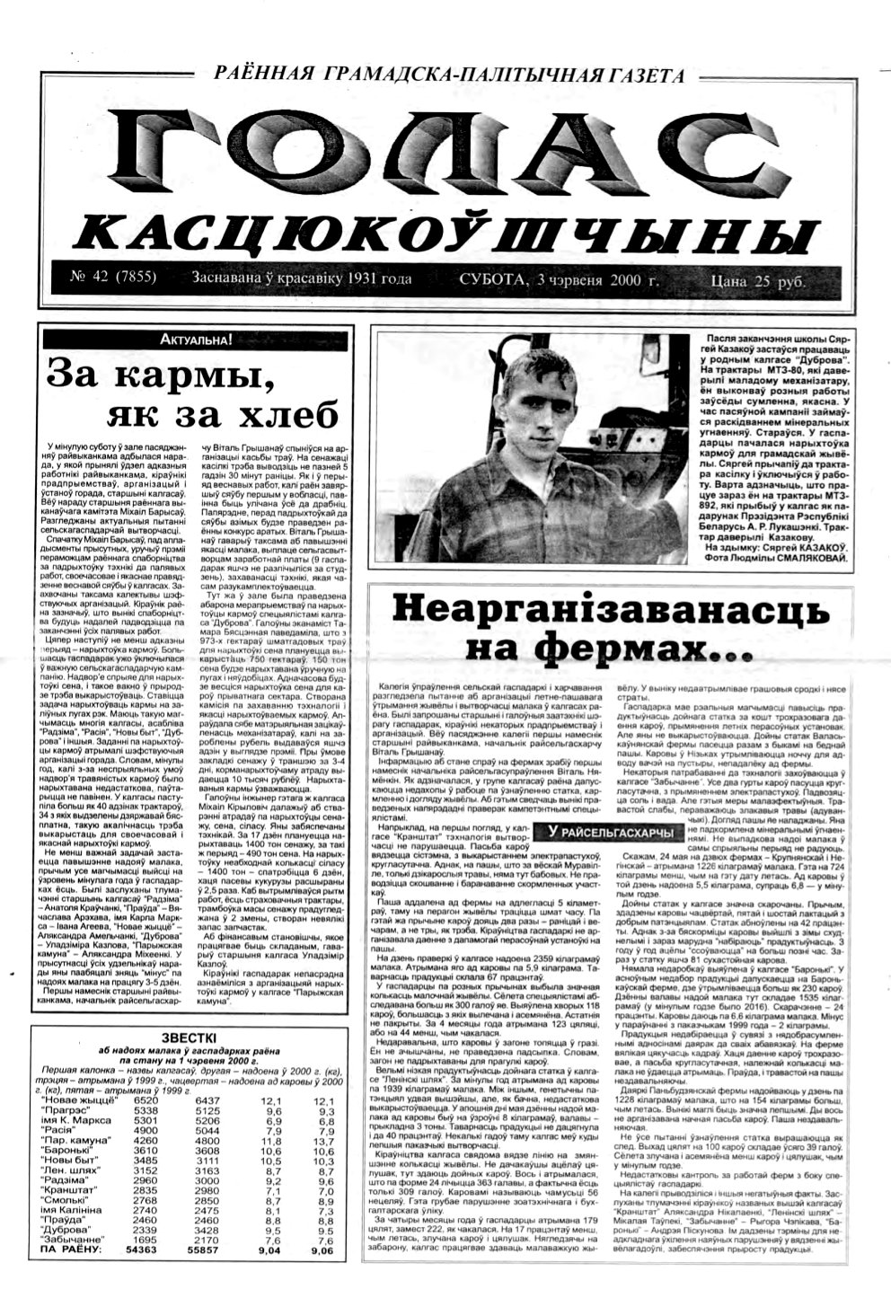 Выдавец: Касцюковіцкі раённы выканаўчы камітэт
