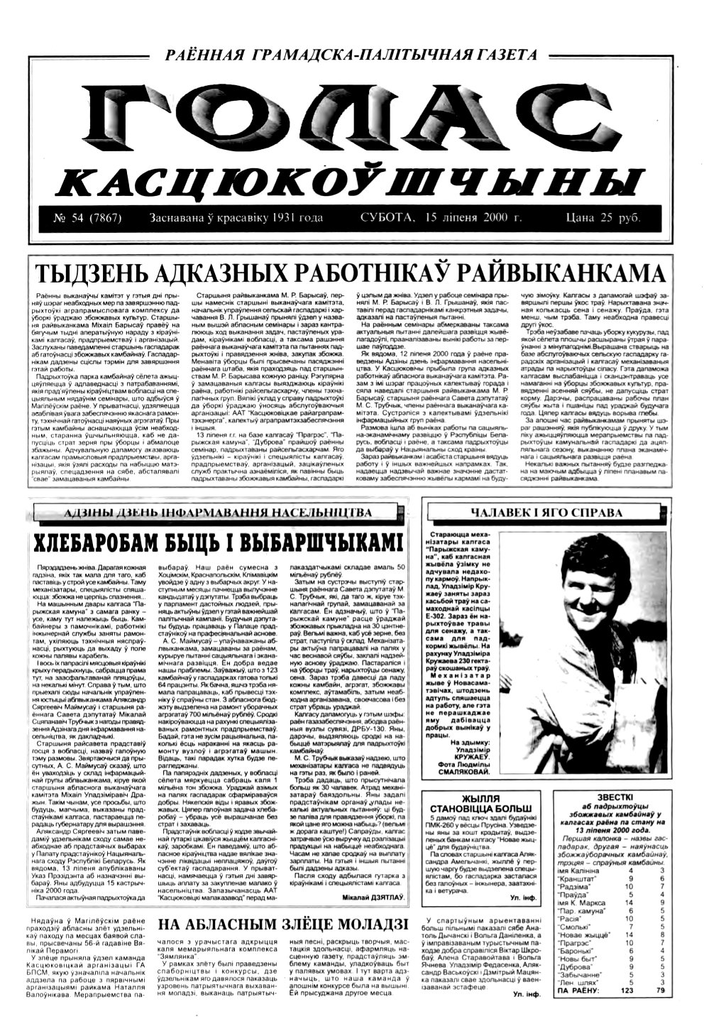 Publisher: Касцюковіцкі раённы выканаўчы камітэт