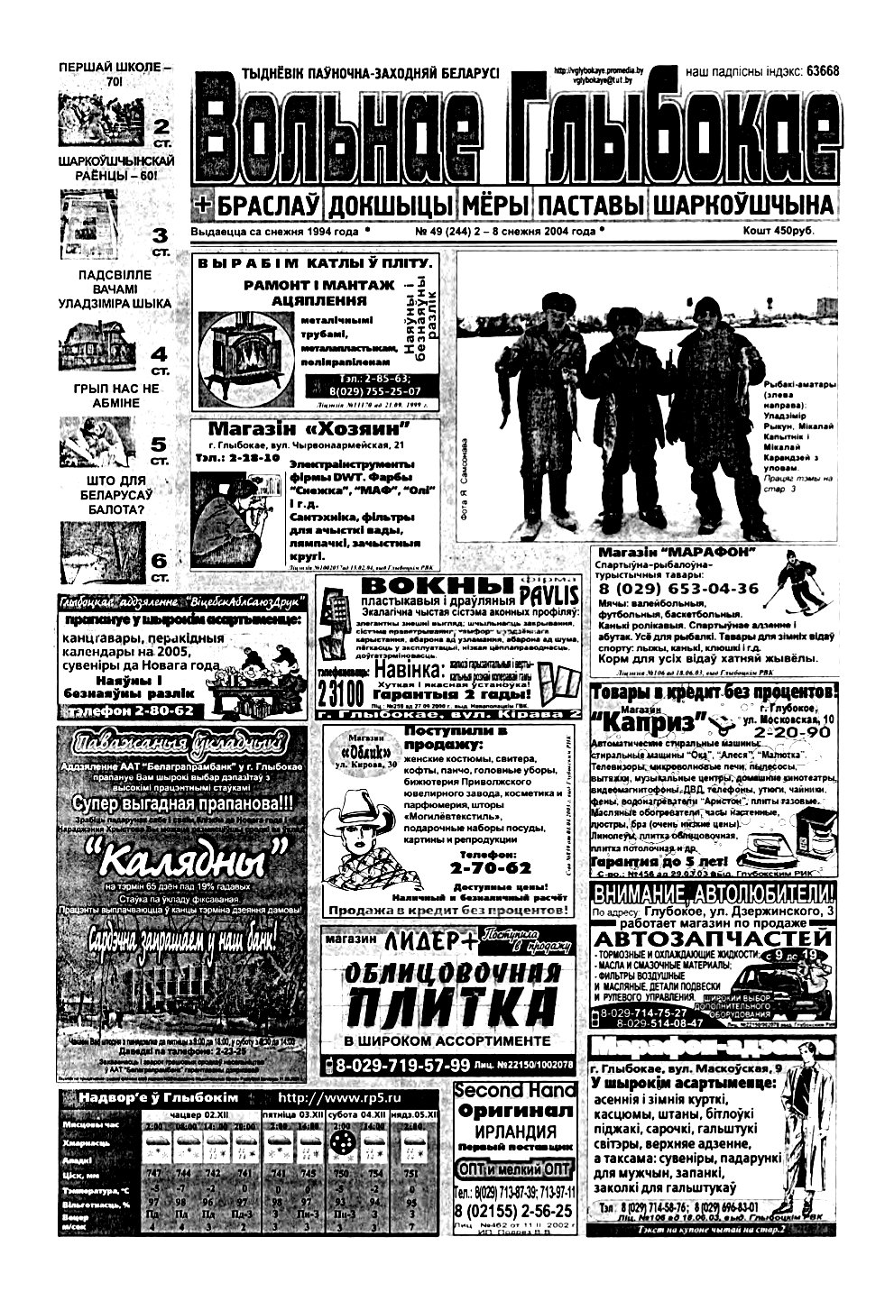 «Вольнае Глыбокае» — незалежная рэгіянальная беларуская штотыднёвая газета, выдаецца з 1994 г. у Глыбокім на беларускай і рускай мовах. Першапачаткова газета выходзіла як орган Глыбоцкай суполкі БНФ. Яе выданнем ад самага пачатку займаецца Уладзімір Скрабатун. Назву выдання ён тлумачыць так: "Вольнае таму, што вольная Беларусь. Беларусь паўстала як незалежная дзяржава, і ў гэтай назве няма ніякага супрацьпастаўлення ўладам або яшчэ якім... Болей »