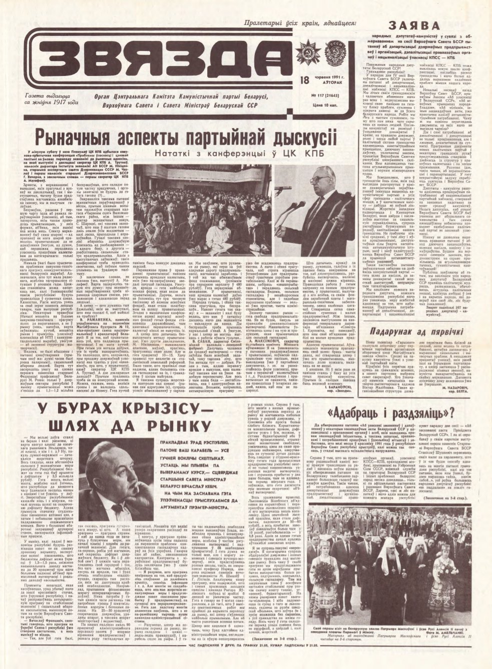 «Звязда» — орган Цэнтральнага Камітэта Камуністычнай партыі Беларусі, Вярхоўнага Савета і Савета Міністраў Беларускай ССР. Выходзіць 250 разоў на год. Аўтары апублікаваных матэрыялаў нясуць адказнасць за падбор і дакладнасць фактаў. Іх меркаванні неабавязкова адлюстроўваюць пункт гледжання рэдакцыі. More »