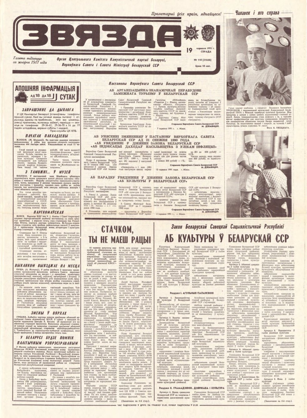 «Звязда» — орган Цэнтральнага Камітэта Камуністычнай партыі Беларусі, Вярхоўнага Савета і Савета Міністраў Беларускай ССР. Выходзіць 250 разоў на год. Аўтары апублікаваных матэрыялаў нясуць адказнасць за падбор і дакладнасць фактаў. Іх меркаванні неабавязкова адлюстроўваюць пункт гледжання рэдакцыі. More »