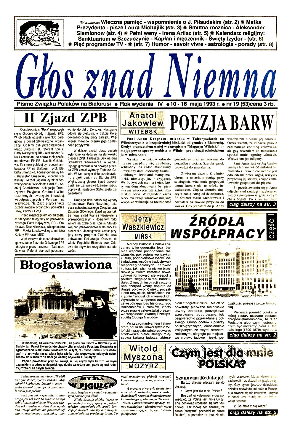 Głos znad Niemna – polskojęzyczny tygodnik wydawany na Białorusi od 3 grudnia 1989 roku; organ prasowy Związku Polaków na Białorusi. Twórcą i pierwszym redaktorem pisma był Eugeniusz Skrobocki z Grodna. Dzięki jego zaangażowaniu pierwsze numery „Głosu znad Niemna” otrzymał Papież Jan Paweł II podczas prywatnej audiencji władz Związku w Watykanie w roku 1990. Pierwszy numer ukazał się jako dodatek specjalny do Czerwonego Sztandaru z okaz... Болей »