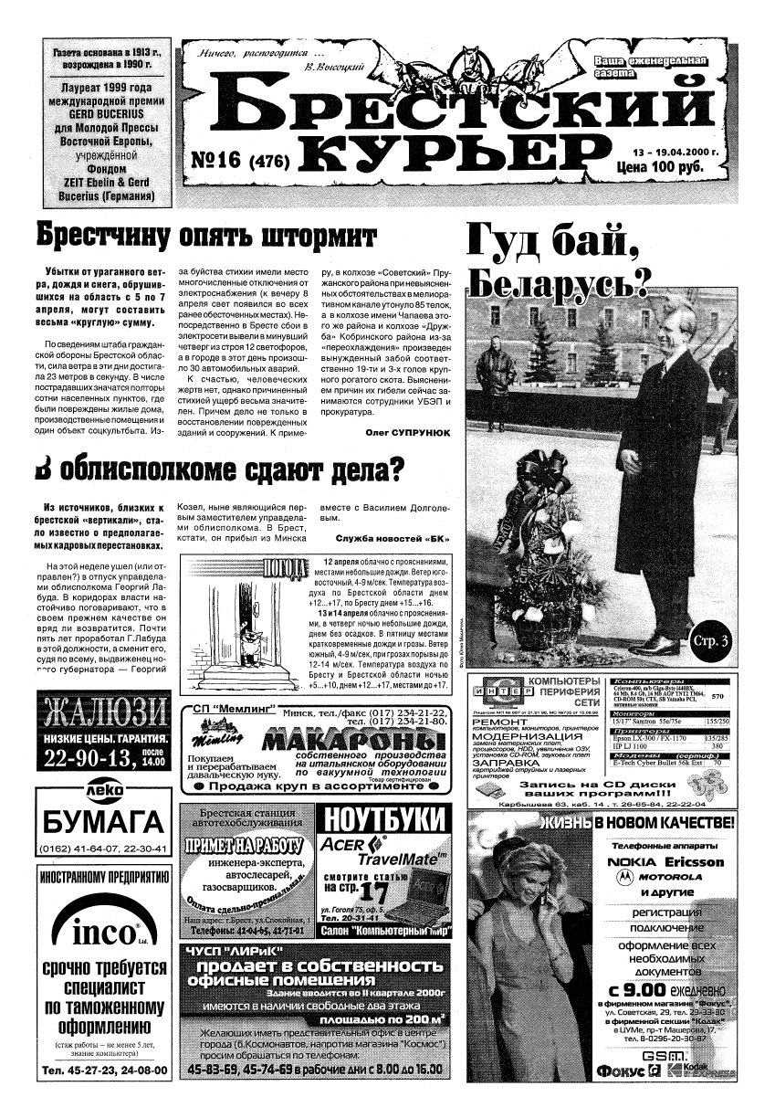 Газета «Брестский курьер» основана в 1990 году. Является информационно-аналитическим еженедельником. Тираж от 15 000. День выхода — среда. Распространение г.Брест и область, по подписке — Республика Беларусь. Формат — А3. Объем — 32 полосы. На страницах газеты "Брестский курьер" постоянно присутствуют новости и комментарии, репортажи с мест событий, журналистские расследования, аналитические обзоры экономики и финансов, мнения политиков и обществоведов, статьи по проблемам городского хозяйства, агропромышленного комплекса, развития фермерства, письма читателей, культурная, спортивная и криминальная хроника, материалы консультативного характера и т.д. В газете также постоянно публикуются сообщения органов местной власти, телепрограммы, включая кабельные, частные объявления и реклама.