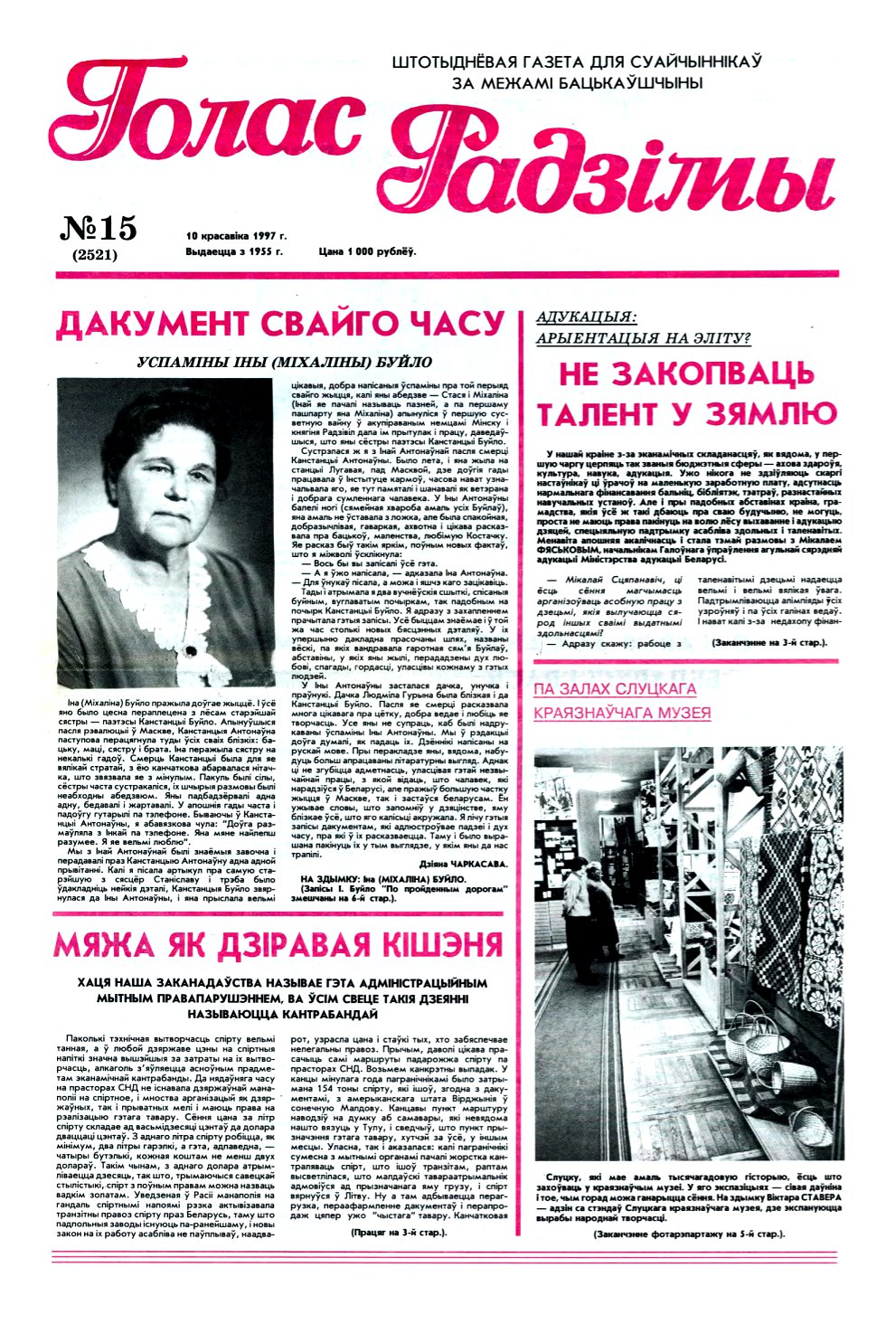 «Голас Радзімы» — штотыднёвая газета для суайчыннікаў за межамі Беларусі. Выдаецца з 6 красавіка 1955 года ў Мінску на беларускай мове штотыднёва. Да студзеня 1960 года называлася «За вяртанне на Радзіму». З сярэдзіны 1970-х гадоў асвятляла жыццё, у тым ліку беларускай эміграцыі. З сярэдзіны 1990-х гадоў адзінае беларускае выданне, якое распаўсюджвалася сярод нацыянальнай дыяспары і ў асяроддзі замежных беларусістаў. Болей »