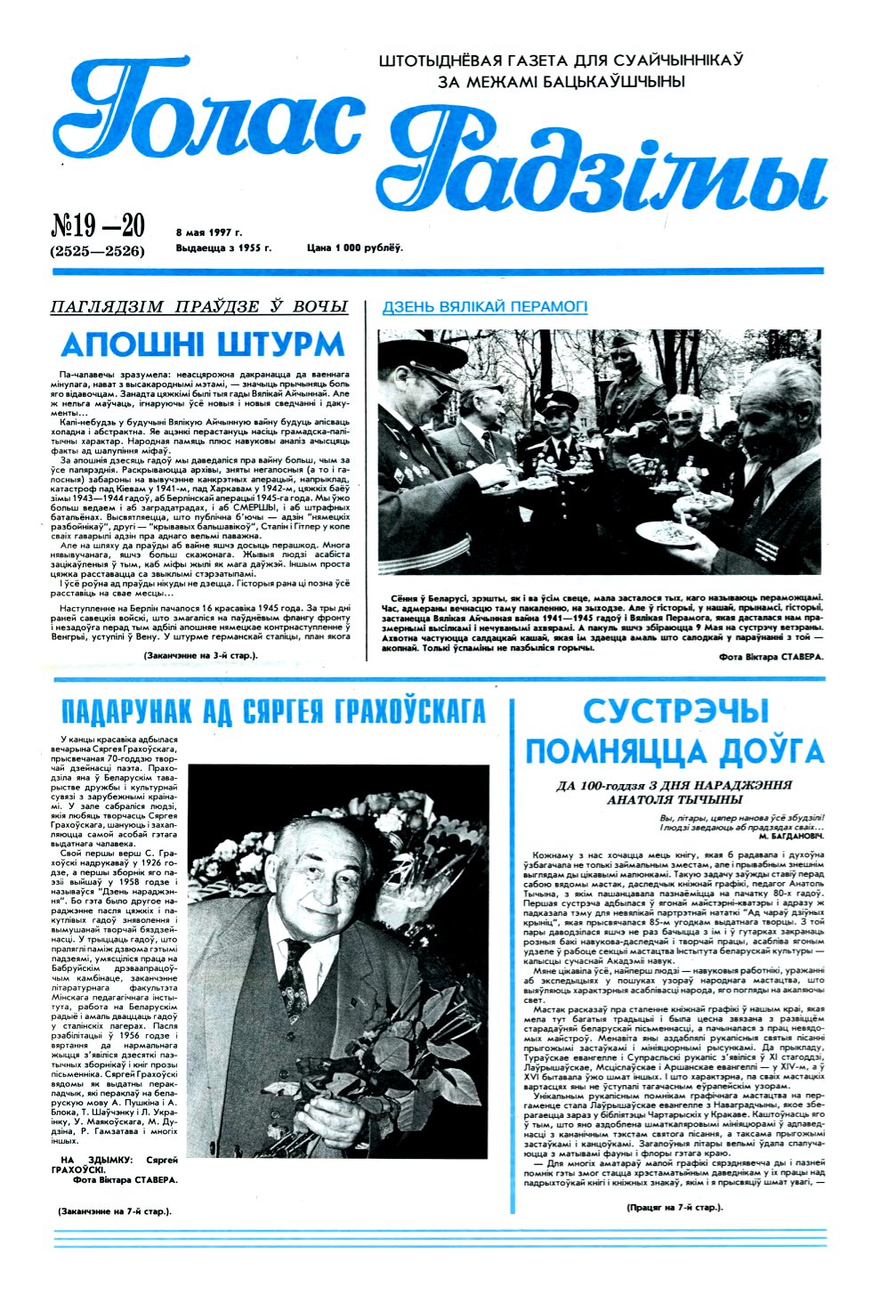 «Голас Радзімы» — штотыднёвая газета для суайчыннікаў за межамі Беларусі. Выдаецца з 6 красавіка 1955 года ў Мінску на беларускай мове штотыднёва. Да студзеня 1960 года называлася «За вяртанне на Радзіму». З сярэдзіны 1970-х гадоў асвятляла жыццё, у тым ліку беларускай эміграцыі. З сярэдзіны 1990-х гадоў адзінае беларускае выданне, якое распаўсюджвалася сярод нацыянальнай дыяспары і ў асяроддзі замежных беларусістаў. Болей »