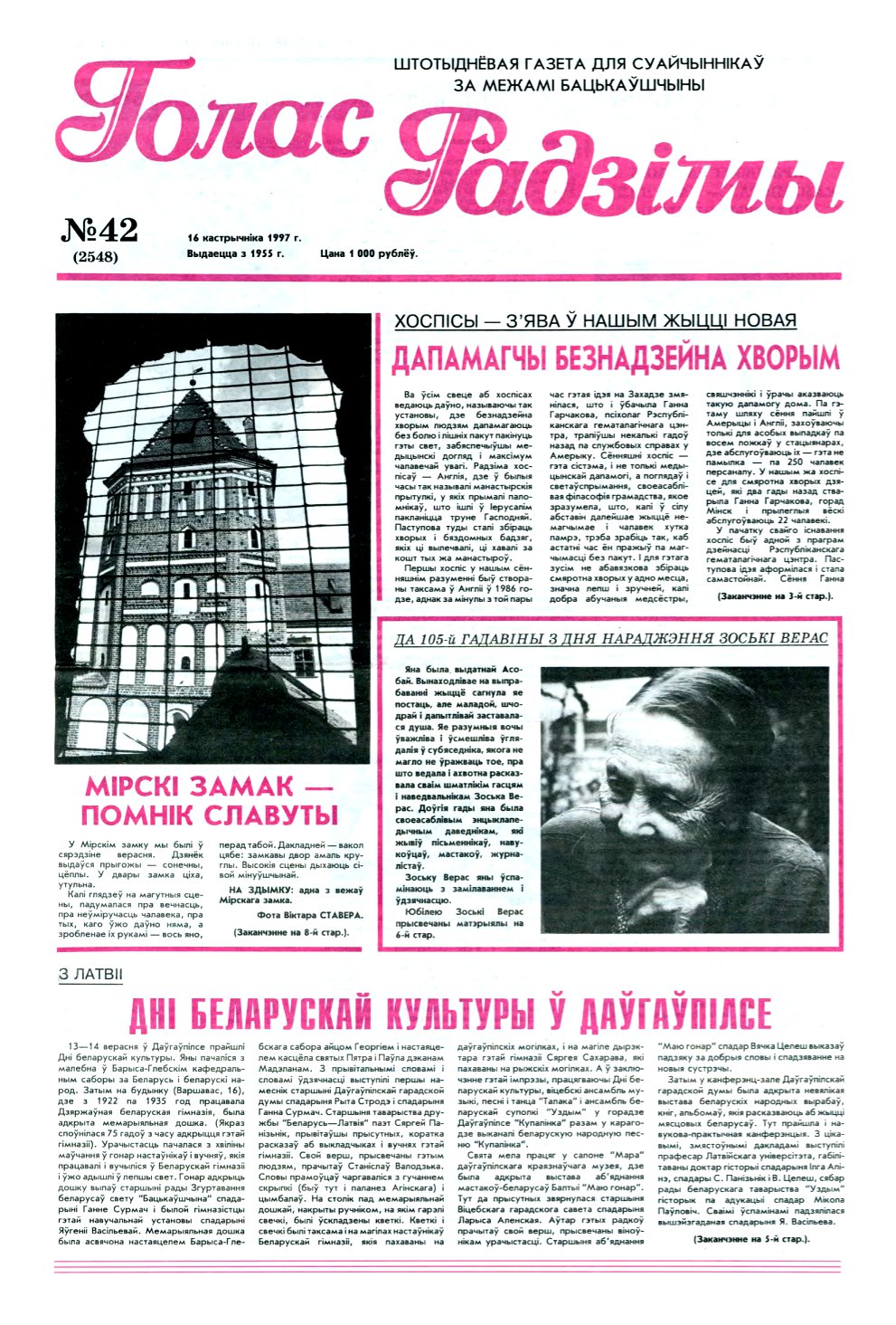 «Голас Радзімы» — штотыднёвая газета для суайчыннікаў за межамі Беларусі. Выдаецца з 6 красавіка 1955 года ў Мінску на беларускай мове штотыднёва. Да студзеня 1960 года называлася «За вяртанне на Радзіму». З сярэдзіны 1970-х гадоў асвятляла жыццё, у тым ліку беларускай эміграцыі. З сярэдзіны 1990-х гадоў адзінае беларускае выданне, якое распаўсюджвалася сярод нацыянальнай дыяспары і ў асяроддзі замежных беларусістаў. Болей »