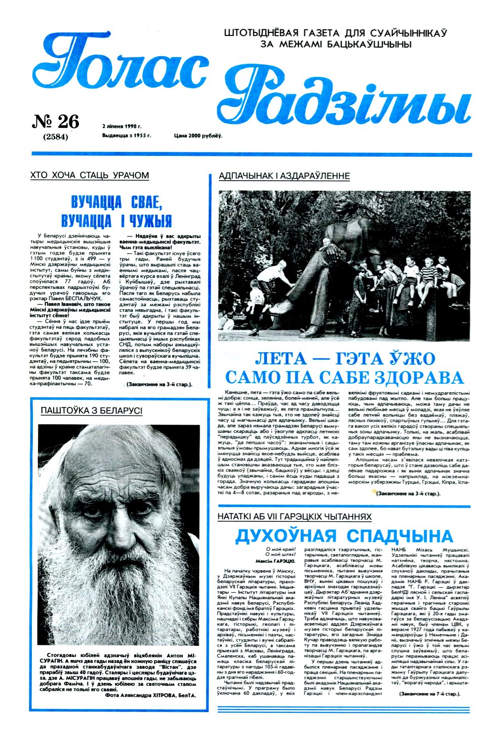 «Голас Радзімы» — штотыднёвая газета для суайчыннікаў за межамі Беларусі. Выдаецца з 6 красавіка 1955 года ў Мінску на беларускай мове штотыднёва. Да студзеня 1960 года называлася «За вяртанне на Радзіму». З сярэдзіны 1970-х гадоў асвятляла жыццё, у тым ліку беларускай эміграцыі. З сярэдзіны 1990-х гадоў адзінае беларускае выданне, якое распаўсюджвалася сярод нацыянальнай дыяспары і ў асяроддзі замежных беларусістаў. Болей »