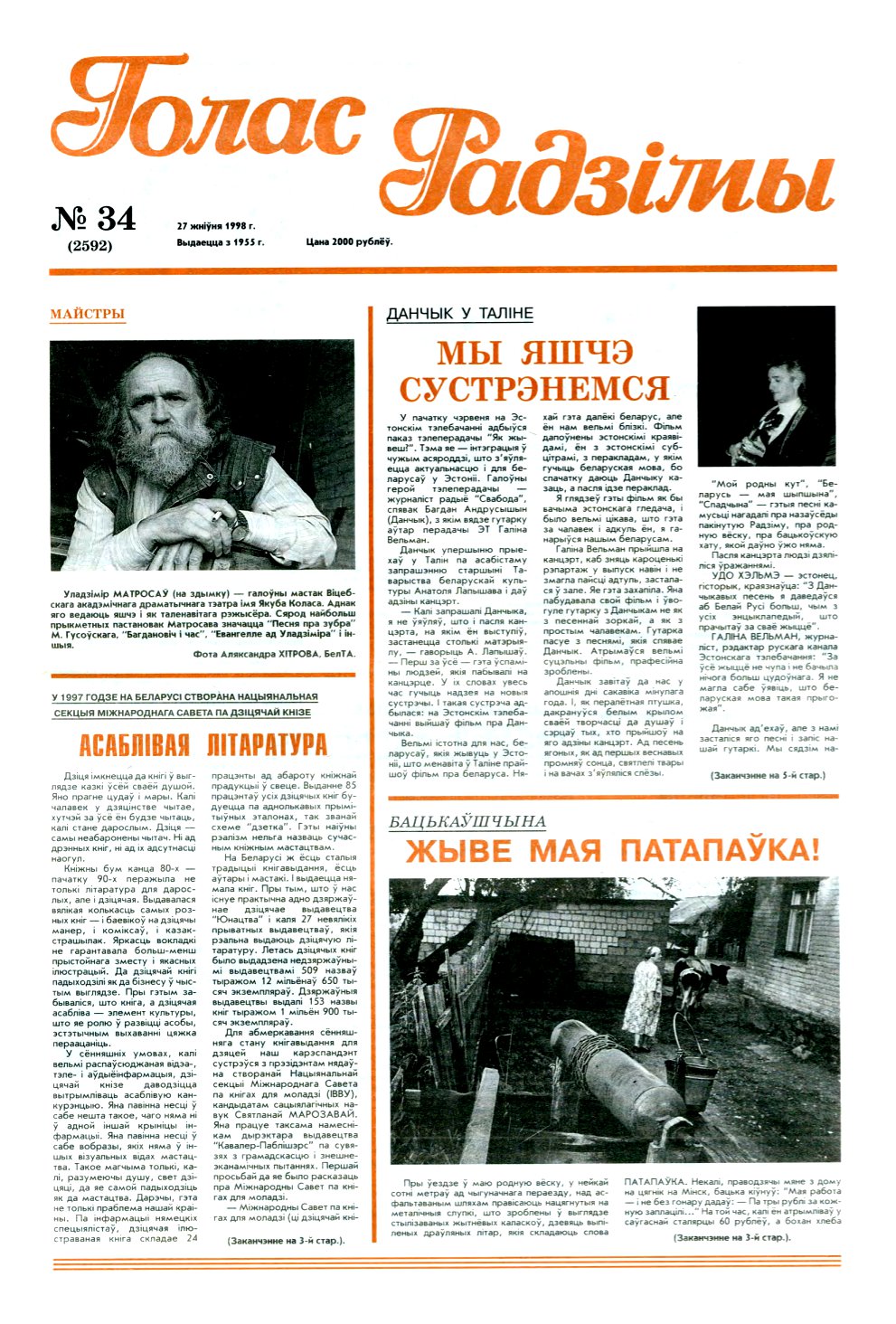 «Голас Радзімы» — штотыднёвая газета для суайчыннікаў за межамі Беларусі. Выдаецца з 6 красавіка 1955 года ў Мінску на беларускай мове штотыднёва. Да студзеня 1960 года называлася «За вяртанне на Радзіму». З сярэдзіны 1970-х гадоў асвятляла жыццё, у тым ліку беларускай эміграцыі. З сярэдзіны 1990-х гадоў адзінае беларускае выданне, якое распаўсюджвалася сярод нацыянальнай дыяспары і ў асяроддзі замежных беларусістаў. Болей »