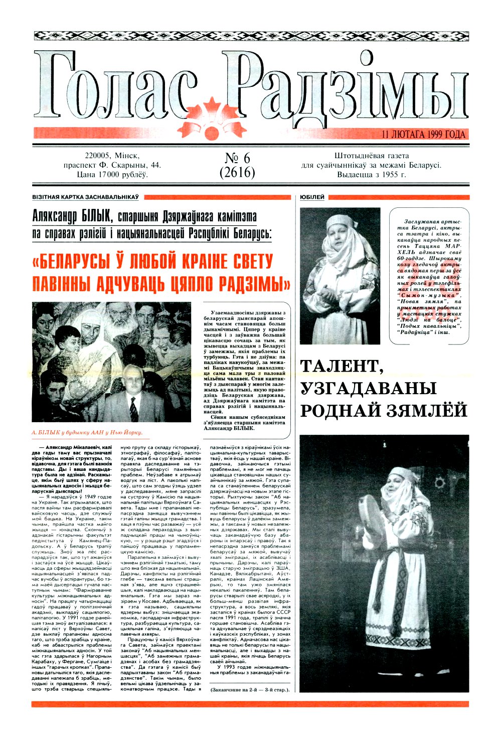 «Голас Радзімы» — штотыднёвая газета для суайчыннікаў за межамі Беларусі. Выдаецца з 6 красавіка 1955 года ў Мінску на беларускай мове штотыднёва. Да студзеня 1960 года называлася «За вяртанне на Радзіму». З сярэдзіны 1970-х гадоў асвятляла жыццё, у тым ліку беларускай эміграцыі. З сярэдзіны 1990-х гадоў адзінае беларускае выданне, якое распаўсюджвалася сярод нацыянальнай дыяспары і ў асяроддзі замежных беларусістаў. Болей »