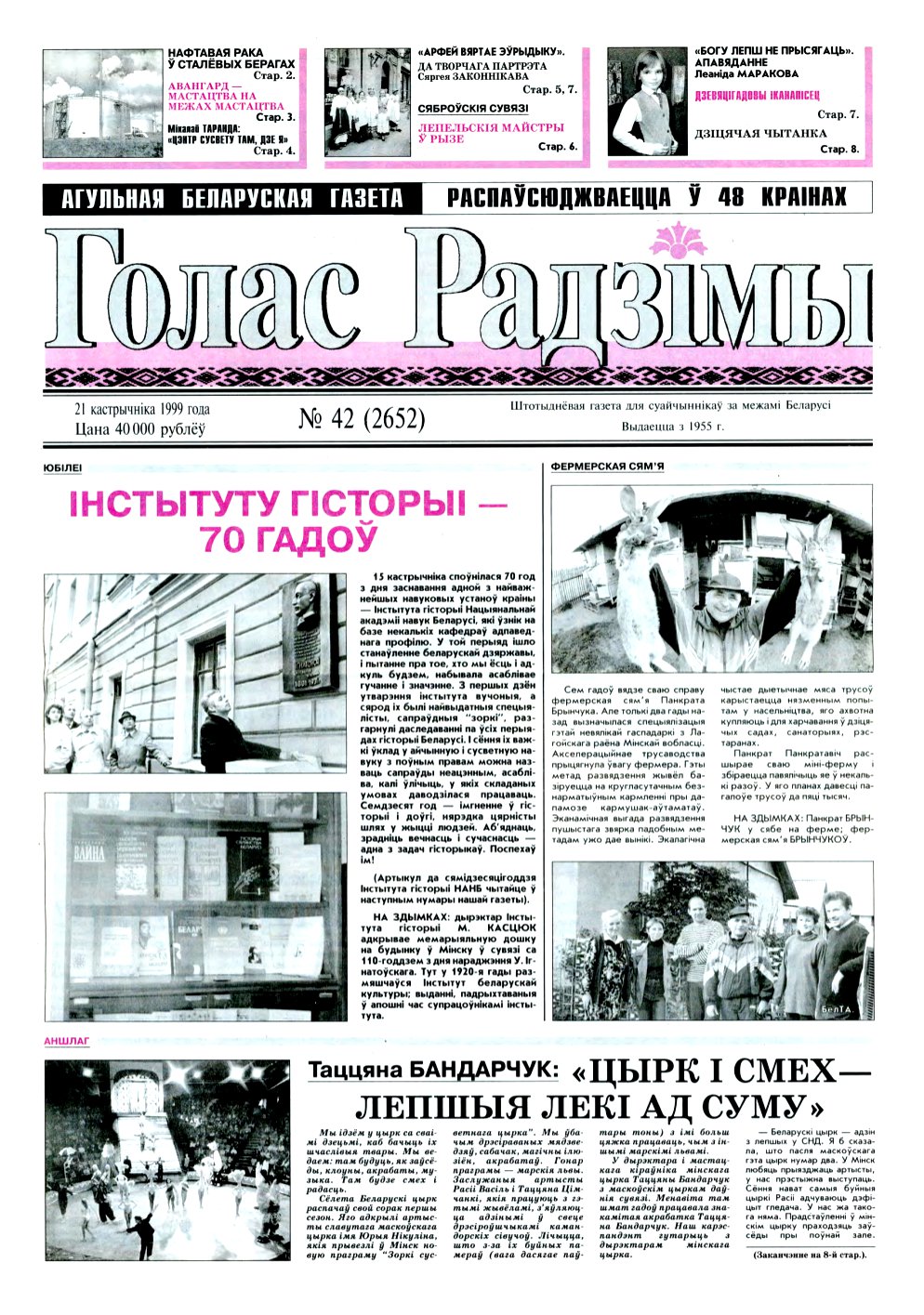 «Голас Радзімы» — штотыднёвая газета для суайчыннікаў за межамі Беларусі. Выдаецца з 6 красавіка 1955 года ў Мінску на беларускай мове штотыднёва. Да студзеня 1960 года называлася «За вяртанне на Радзіму». З сярэдзіны 1970-х гадоў асвятляла жыццё, у тым ліку беларускай эміграцыі. З сярэдзіны 1990-х гадоў адзінае беларускае выданне, якое распаўсюджвалася сярод нацыянальнай дыяспары і ў асяроддзі замежных беларусістаў. Болей »