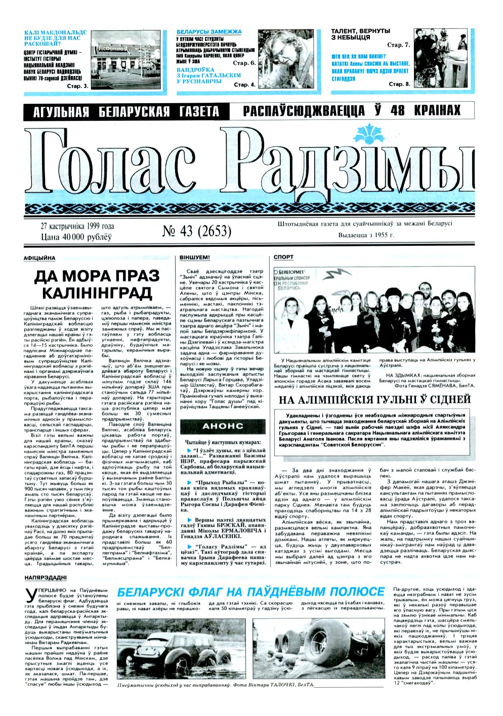 «Голас Радзімы» — штотыднёвая газета для суайчыннікаў за межамі Беларусі. Выдаецца з 6 красавіка 1955 года ў Мінску на беларускай мове штотыднёва. Да студзеня 1960 года называлася «За вяртанне на Радзіму». З сярэдзіны 1970-х гадоў асвятляла жыццё, у тым ліку беларускай эміграцыі. З сярэдзіны 1990-х гадоў адзінае беларускае выданне, якое распаўсюджвалася сярод нацыянальнай дыяспары і ў асяроддзі замежных беларусістаў. Болей »