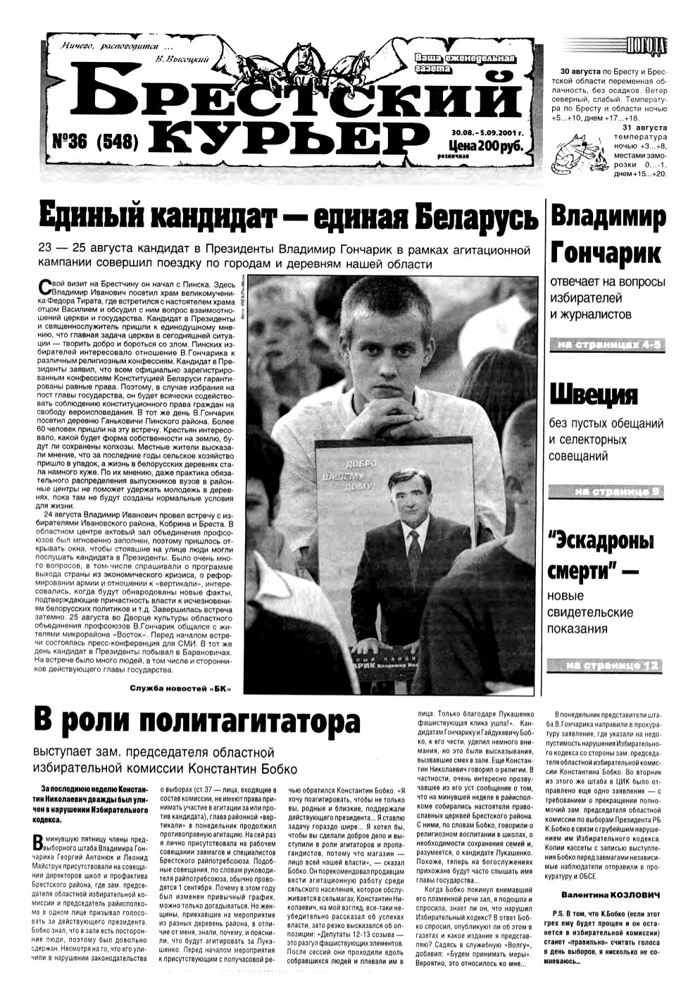 Газета «Брестский курьер» основана в 1990 году. Является информационно-аналитическим еженедельником. Тираж от 15 000. День выхода — среда. Распространение г.Брест и область, по подписке — Республика Беларусь. Формат — А3. Объем — 32 полосы. На страницах газеты "Брестский курьер" постоянно присутствуют новости и комментарии, репортажи с мест событий, журналистские расследования, аналитические обзоры экономики и финансов, мнения политиков и обществоведов, статьи по проблемам городского хозяйства, агропромышленного комплекса, развития фермерства, письма читателей, культурная, спортивная и криминальная хроника, материалы консультативного характера и т.д. В газете также постоянно публикуются сообщения органов местной власти, телепрограммы, включая кабельные, частные объявления и реклама.