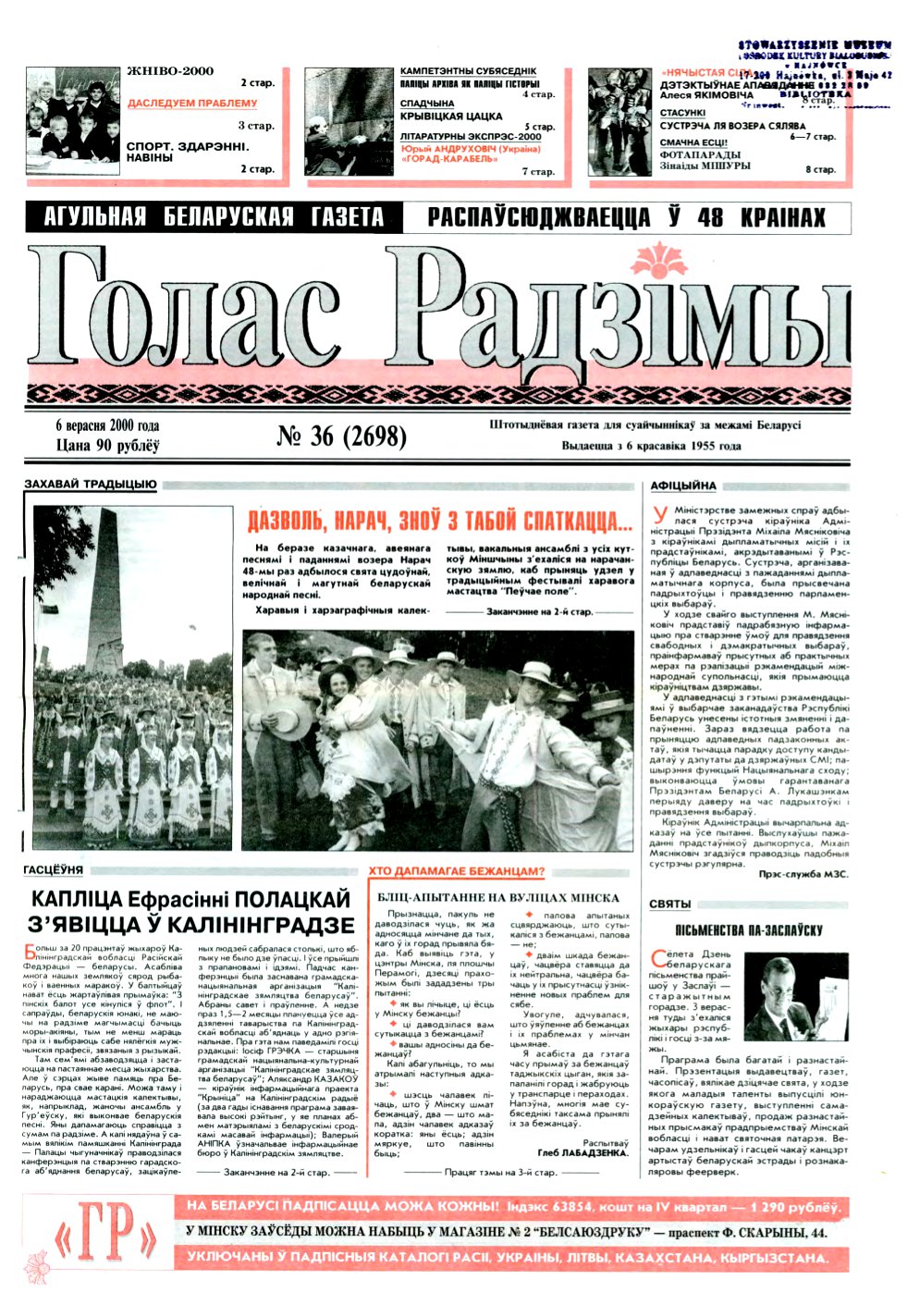 «Голас Радзімы» — штотыднёвая газета для суайчыннікаў за межамі Беларусі. Выдаецца з 6 красавіка 1955 года ў Мінску на беларускай мове штотыднёва. Да студзеня 1960 года называлася «За вяртанне на Радзіму». З сярэдзіны 1970-х гадоў асвятляла жыццё, у тым ліку беларускай эміграцыі. З сярэдзіны 1990-х гадоў адзінае беларускае выданне, якое распаўсюджвалася сярод нацыянальнай дыяспары і ў асяроддзі замежных беларусістаў. Болей »