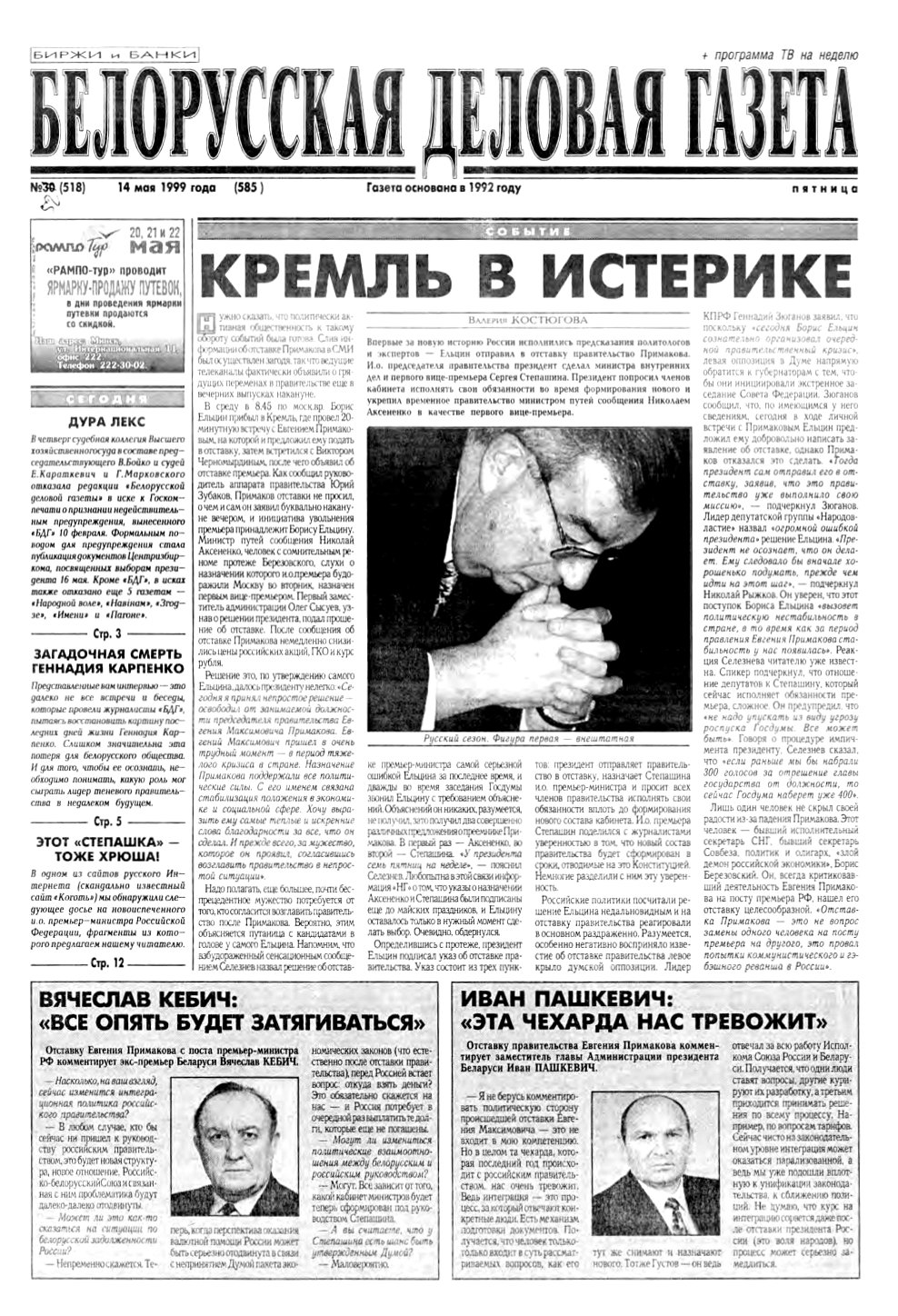 «Белорусская деловая газета» (па-беларуску: «Беларуская дзелавая газэта») — беларуская грамадзка-палітычная газэта, заснаваная ў 1992 годзе. Заснавальнікам і выдаўцом «БДГ» зьяўляецца Выдавецкае прыватнае вунітарнае прадпрыемства «Марат». «БДГ» — штодзённае незалежнае выданьне дзелавых і палітычных кругоў Беларусі. «БДГ» зьяўляецца адным з найболей аўтарытэтных незалежных СМІ Беларусі. За час дзейнасьці газэты ўладамі неаднаразова прадп... Болей »