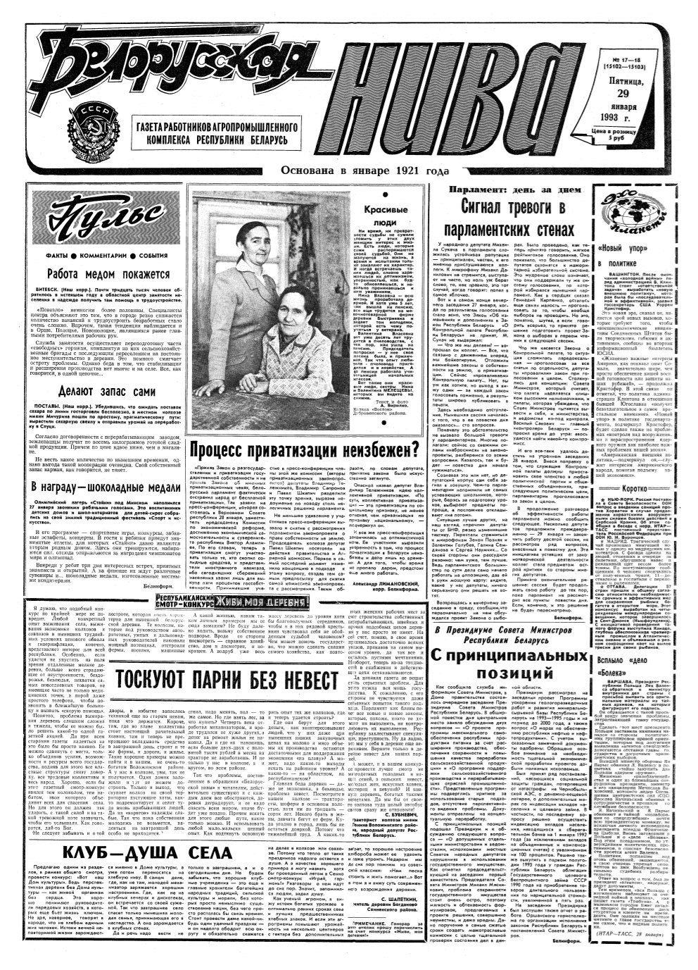 «Белорусская нива» — газета работников Агропромышленного комплекса Республики Беларусь. Учредители: Совет Министров Республики Беларусь и коллектив редакции «Белорусской нивы». За час існавання выданне не раз мяняла назву, мову, арфаграфічныя прынцыпы: спачатку называлася “Белорусская деревня” (на рускай мове), з 1922 г. выходзіла як дадатак да газеты “Звязда”, у 1924 г. яна стала самастойнай і называлася “Беларуская вёска” (на беларуск... Болей »