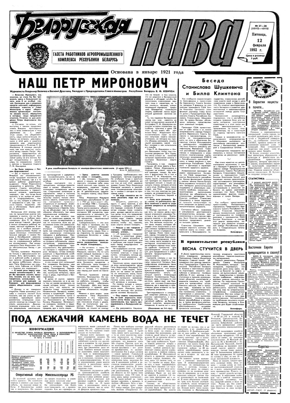 «Белорусская нива» — газета работников Агропромышленного комплекса Республики Беларусь. Учредители: Совет Министров Республики Беларусь и коллектив редакции «Белорусской нивы». За час існавання выданне не раз мяняла назву, мову, арфаграфічныя прынцыпы: спачатку называлася “Белорусская деревня” (на рускай мове), з 1922 г. выходзіла як дадатак да газеты “Звязда”, у 1924 г. яна стала самастойнай і называлася “Беларуская вёска” (на беларуск... Болей »