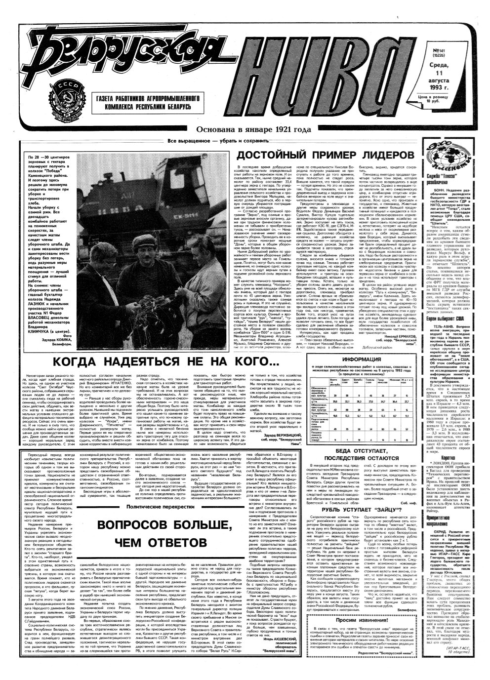 Wydawca: Совет Министров Республики Беларусь, коллектив редакции «Белорусская нива»