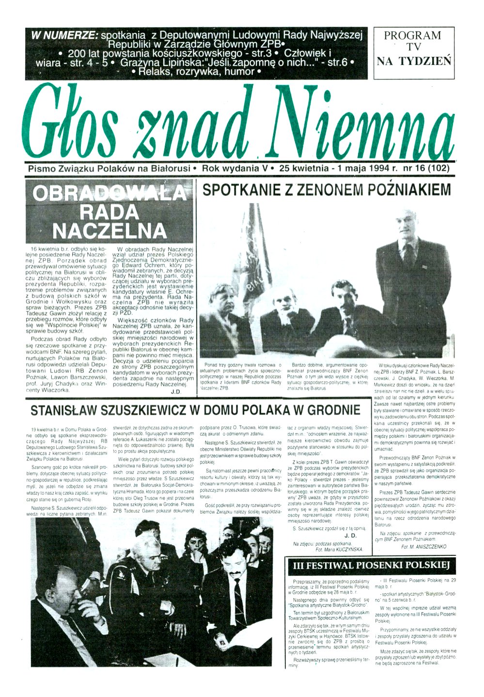 Głos znad Niemna – polskojęzyczny tygodnik wydawany na Białorusi od 3 grudnia 1989 roku; organ prasowy Związku Polaków na Białorusi. Twórcą i pierwszym redaktorem pisma był Eugeniusz Skrobocki z Grodna. Dzięki jego zaangażowaniu pierwsze numery „Głosu znad Niemna” otrzymał Papież Jan Paweł II podczas prywatnej audiencji władz Związku w Watykanie w roku 1990. Pierwszy numer ukazał się jako dodatek specjalny do Czerwonego Sztandaru z okaz... Болей »