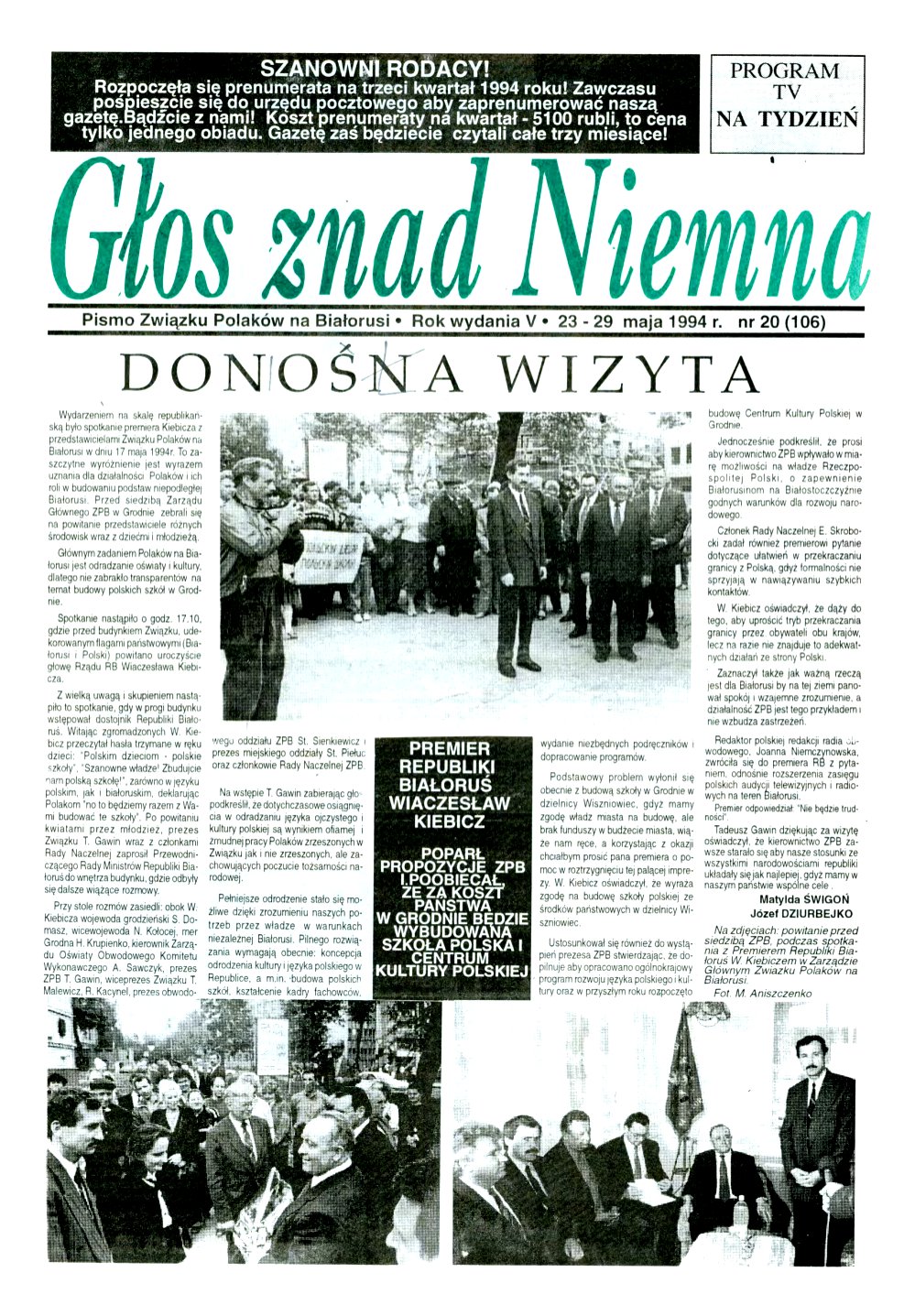 Głos znad Niemna – polskojęzyczny tygodnik wydawany na Białorusi od 3 grudnia 1989 roku; organ prasowy Związku Polaków na Białorusi. Twórcą i pierwszym redaktorem pisma był Eugeniusz Skrobocki z Grodna. Dzięki jego zaangażowaniu pierwsze numery „Głosu znad Niemna” otrzymał Papież Jan Paweł II podczas prywatnej audiencji władz Związku w Watykanie w roku 1990. Pierwszy numer ukazał się jako dodatek specjalny do Czerwonego Sztandaru z okaz... Болей »