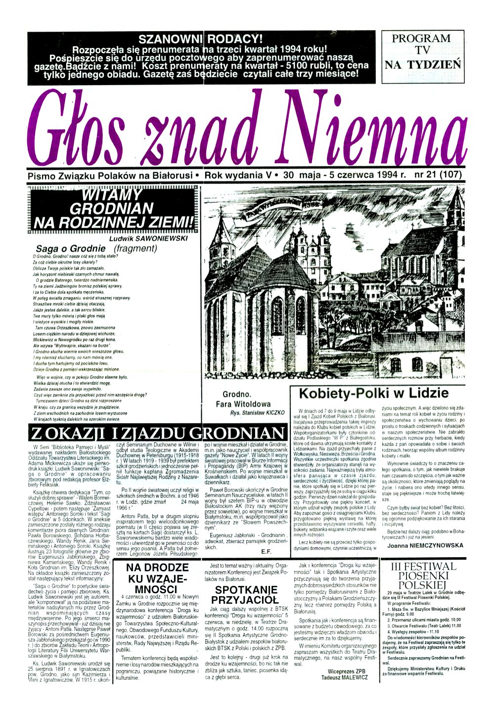 Głos znad Niemna – polskojęzyczny tygodnik wydawany na Białorusi od 3 grudnia 1989 roku; organ prasowy Związku Polaków na Białorusi. Twórcą i pierwszym redaktorem pisma był Eugeniusz Skrobocki z Grodna. Dzięki jego zaangażowaniu pierwsze numery „Głosu znad Niemna” otrzymał Papież Jan Paweł II podczas prywatnej audiencji władz Związku w Watykanie w roku 1990. Pierwszy numer ukazał się jako dodatek specjalny do Czerwonego Sztandaru z okaz... Болей »