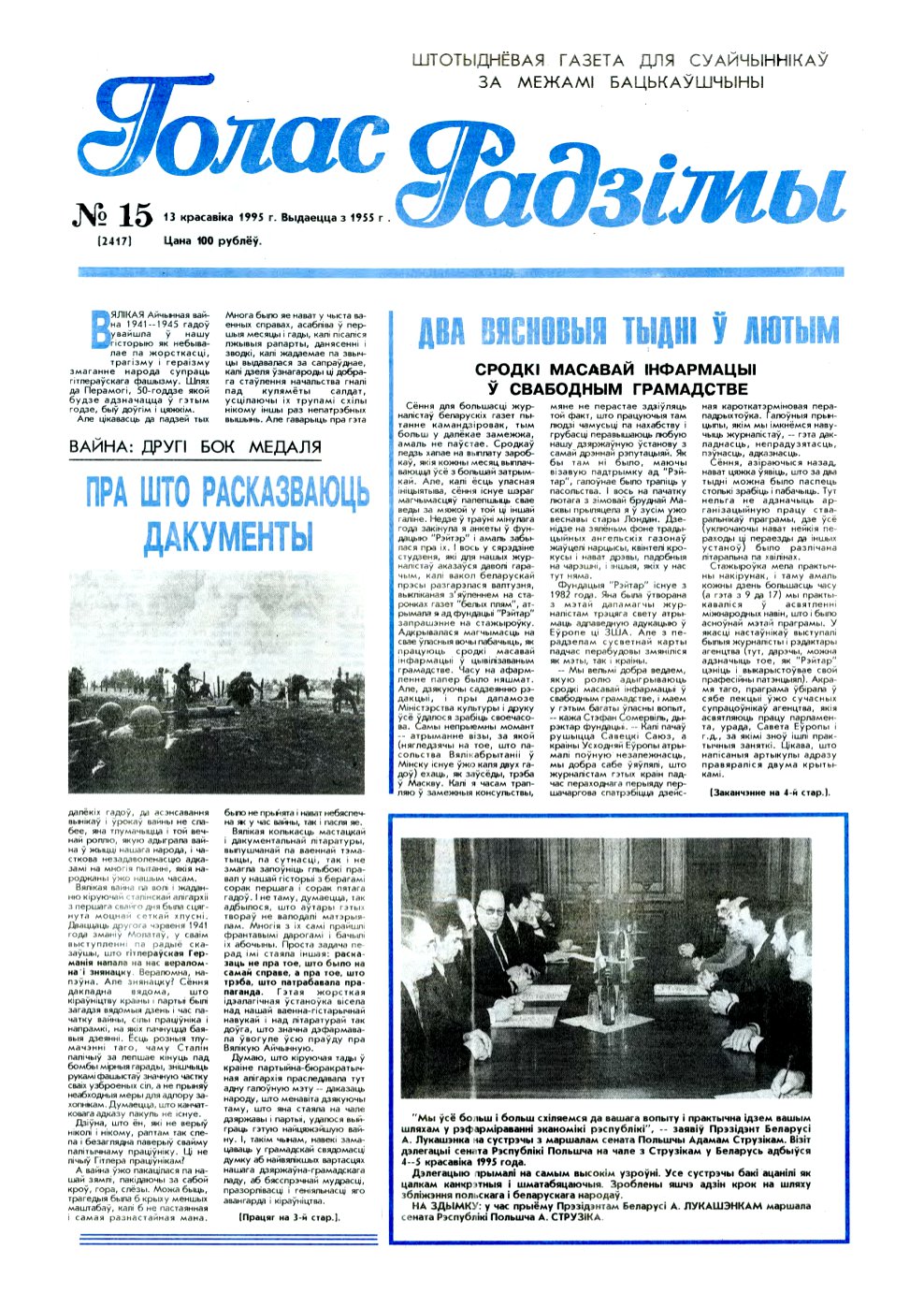 «Голас Радзімы» — штотыднёвая газета для суайчыннікаў за межамі Беларусі. Выдаецца з 6 красавіка 1955 года ў Мінску на беларускай мове штотыднёва. Да студзеня 1960 года называлася «За вяртанне на Радзіму». З сярэдзіны 1970-х гадоў асвятляла жыццё, у тым ліку беларускай эміграцыі. З сярэдзіны 1990-х гадоў адзінае беларускае выданне, якое распаўсюджвалася сярод нацыянальнай дыяспары і ў асяроддзі замежных беларусістаў. Болей »