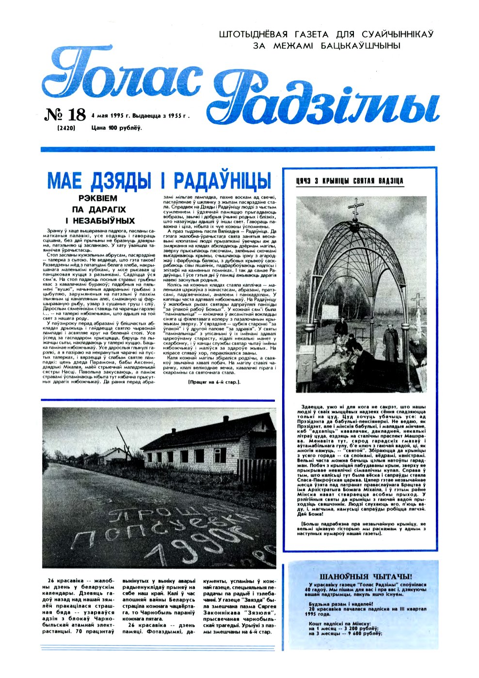 «Голас Радзімы» — штотыднёвая газета для суайчыннікаў за межамі Беларусі. Выдаецца з 6 красавіка 1955 года ў Мінску на беларускай мове штотыднёва. Да студзеня 1960 года называлася «За вяртанне на Радзіму». З сярэдзіны 1970-х гадоў асвятляла жыццё, у тым ліку беларускай эміграцыі. З сярэдзіны 1990-х гадоў адзінае беларускае выданне, якое распаўсюджвалася сярод нацыянальнай дыяспары і ў асяроддзі замежных беларусістаў. Болей »