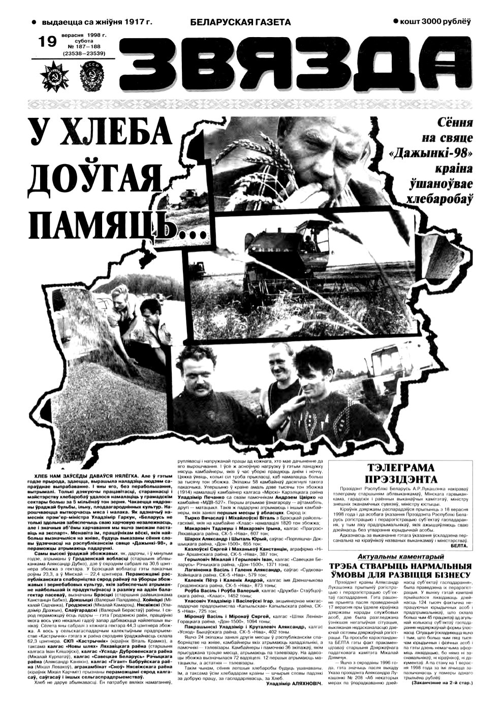 «Звязда» — орган Цэнтральнага Камітэта Камуністычнай партыі Беларусі, Вярхоўнага Савета і Савета Міністраў Беларускай ССР. Выходзіць 250 разоў на год. Аўтары апублікаваных матэрыялаў нясуць адказнасць за падбор і дакладнасць фактаў. Іх меркаванні неабавязкова адлюстроўваюць пункт гледжання рэдакцыі. Болей »