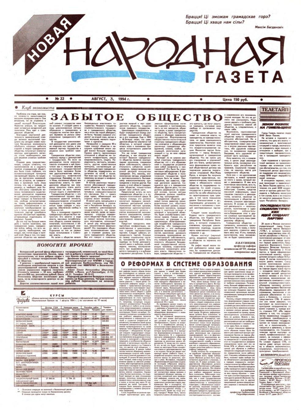 «Новая народная газета» — Учредитель — Координационный комитет Народного движения Беларуси. Главный редактор:Наталья Петровна Машерова. Газета издается на русском и белорусском языках. Мнения авторов опубликованных материалов могут не совпадать с позицией редакции. При перепечатке ссылка на ННГ обязательна.