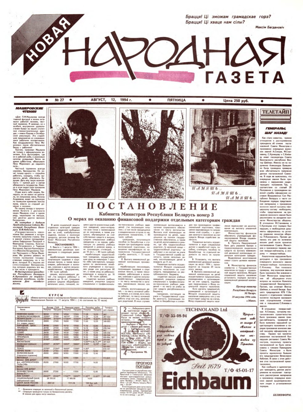 «Новая народная газета» — Учредитель — Координационный комитет Народного движения Беларуси. Главный редактор:Наталья Петровна Машерова. Газета издается на русском и белорусском языках. Мнения авторов опубликованных материалов могут не совпадать с позицией редакции. При перепечатке ссылка на ННГ обязательна.