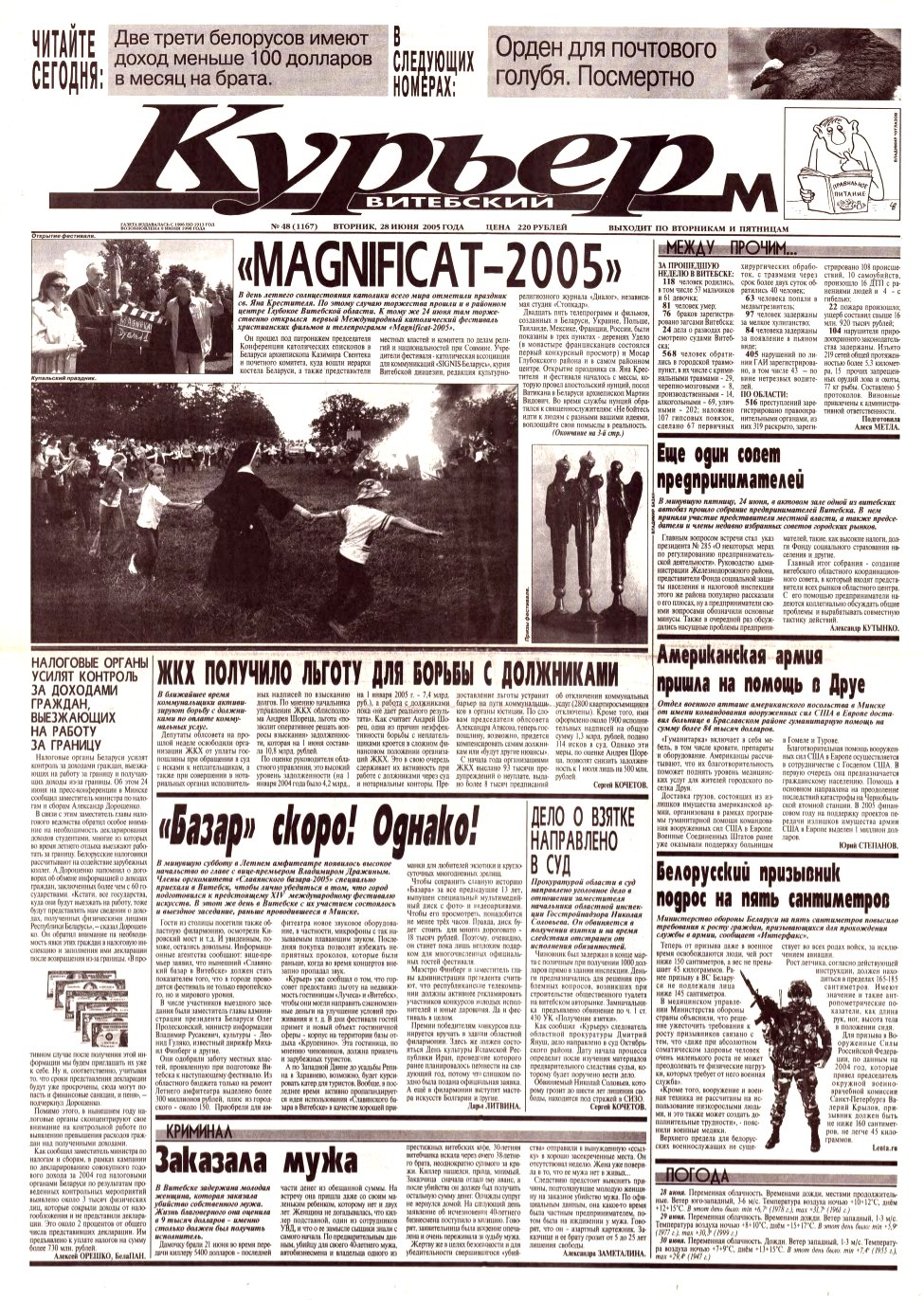 Уважаемые читатели газеты «ВИТЕБСКИЙ КУРЬЕР», информационные, познавательные издания, администрации интернет-ресурсов, масс-медиа, перед вами электронная версия номера нашей газеты, открытого для свободного доступа. При перепечатке, ссылка на нашу газету или сайт обязательна! Все авторские права защищены. Наша редакция знакомится с письмами читателей, не вступая в переписку. Рукописи не рецензируются и не возвращаются. Наша редакция не ... Болей »