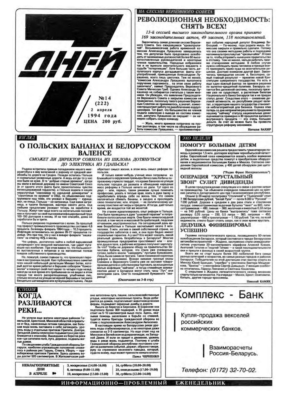 «7 дней» — учредитель: коллектив редакции 7 Дней, Белорусское информационное агентство. Главный редактор Анатолий Лемешенок. Выходит один раз в неделю на русском языке. Болей »