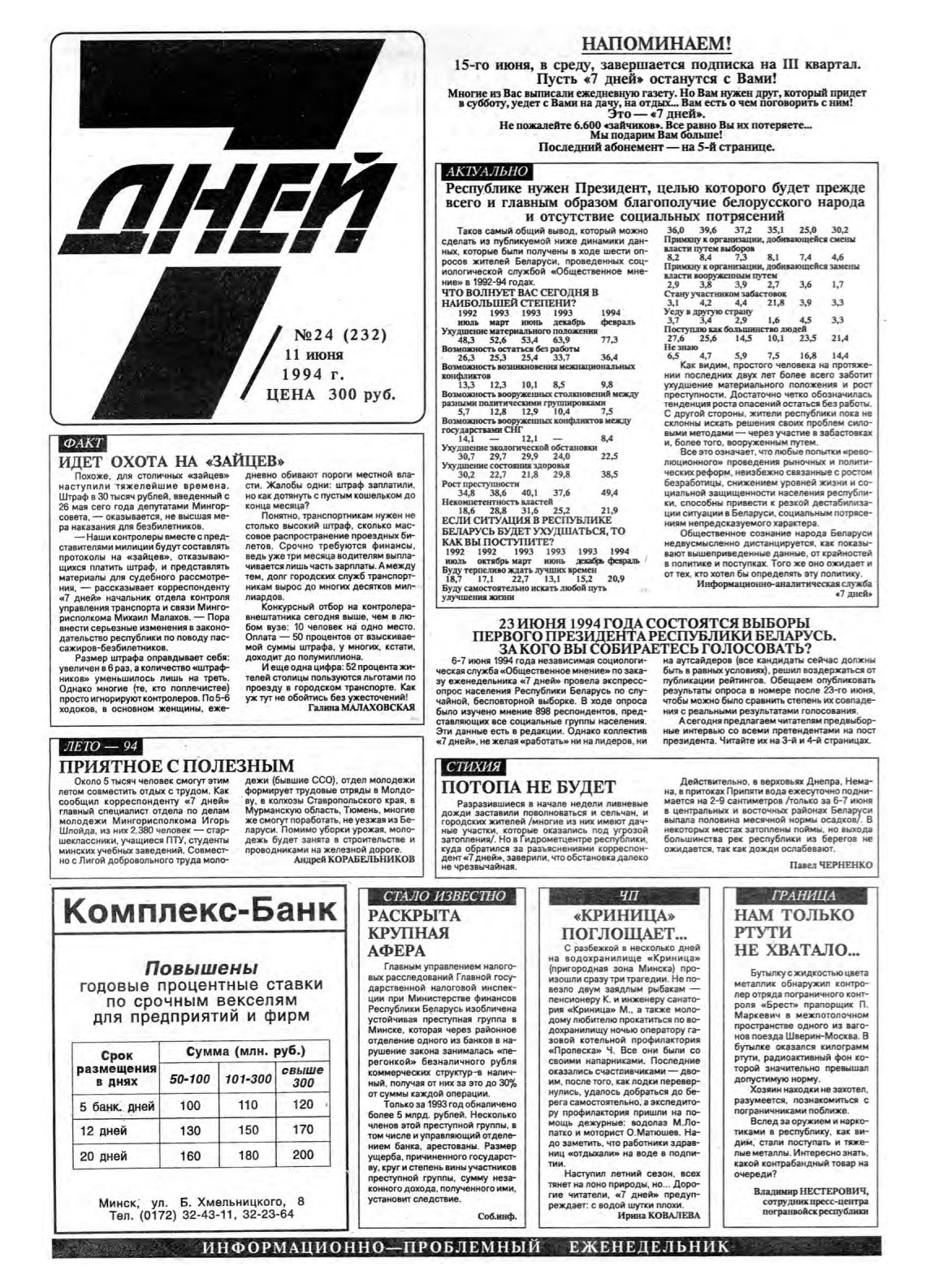 «7 дней» — еженедельник. Учредитель: коллектив редакции 7 Дней, Белорусское информационное агентство. Главный редпктор Анатолий Лемешенок. Выходит один раз в неделю на русском языке.
