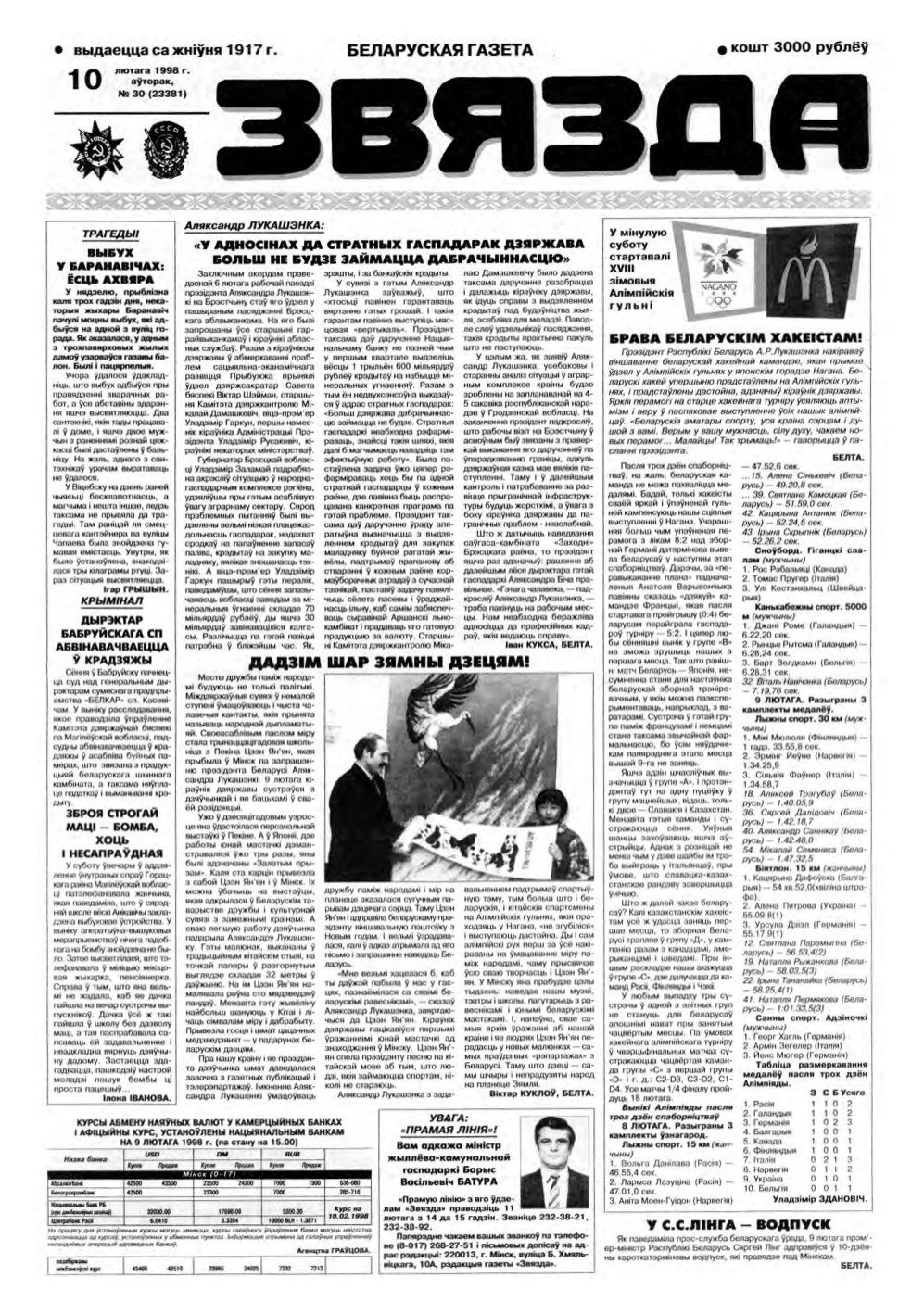 «Звязда» — Беларуская газэта. Выходзіць 250 разоў на год. Аўтары апублікаваных матэрыялаў нясуць адказнасць за падбор і дакладнасць фактаў. Іх меркаванні неабавязкова адлюстроўваюць пункт гледжання рэдакцыі. Болей »
