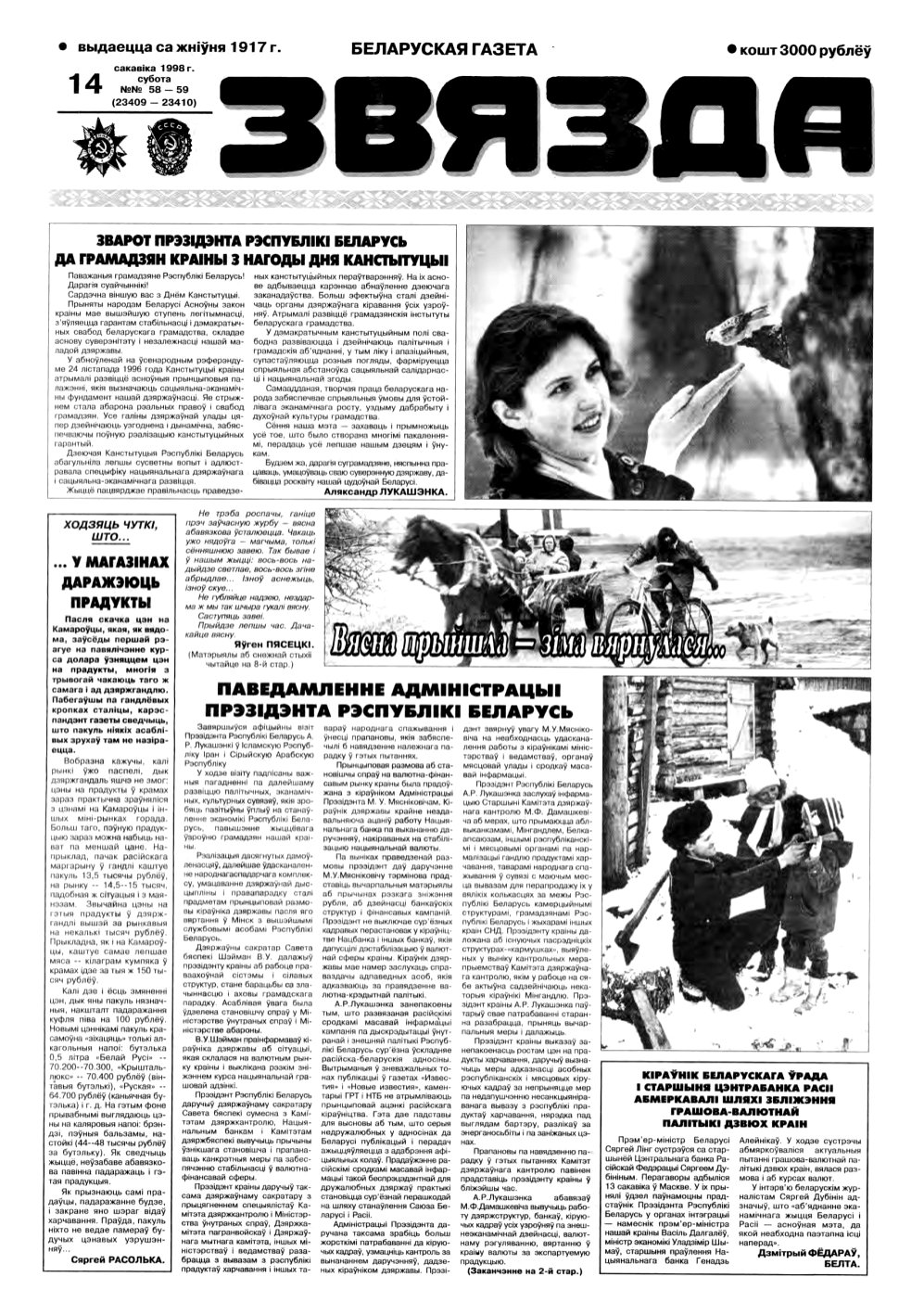 «Звязда» — Беларуская газэта. Выходзіць 250 разоў на год. Аўтары апублікаваных матэрыялаў нясуць адказнасць за падбор і дакладнасць фактаў. Іх меркаванні неабавязкова адлюстроўваюць пункт гледжання рэдакцыі. Болей »
