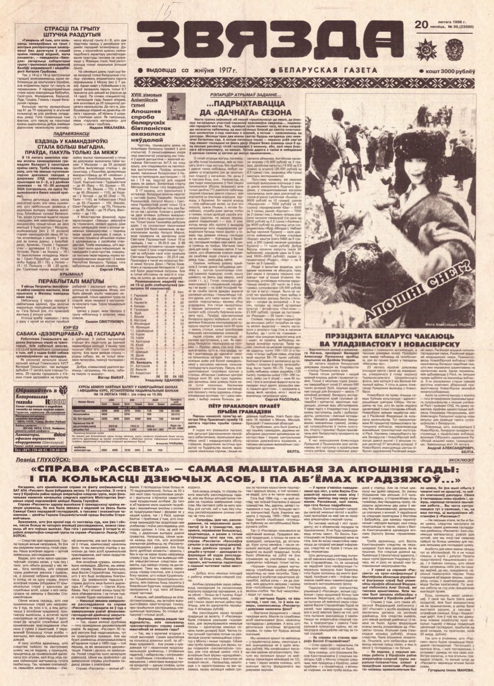«Звязда» — Беларуская газэта. Выходзіць 250 разоў на год. Аўтары апублікаваных матэрыялаў нясуць адказнасць за падбор і дакладнасць фактаў. Іх меркаванні неабавязкова адлюстроўваюць пункт гледжання рэдакцыі. Болей »