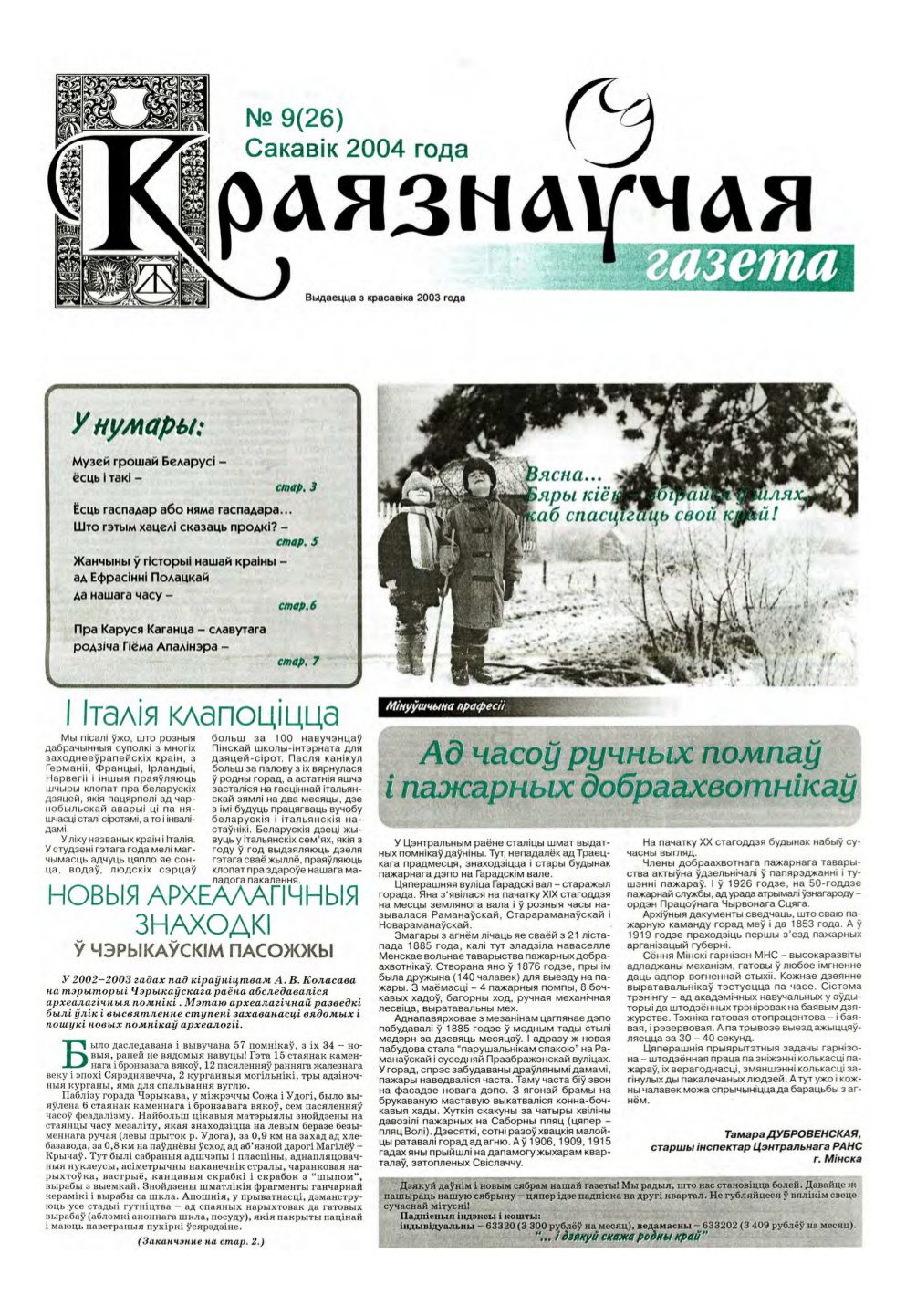 «Краязнаўчая газета» выдаецца з красавіка 2003 г. Штомесяц выходзіць чатыры нумары. На старонках выдання змяшчаюцца артыкулы мясцовых краязнаўцаў, прысвечаныя гісторыі і традыцыям рэгіёнаў нашай краіны, даследаванні навукоўцаў пра гісторыю, этнаграфію, фальклор і архітэктуру, пра гістарычныя падзеі і асобаў, а таксама расповяды пра нашых землякоў, якія праславіліся не толькі ў ў Беларусі, але і за яе межамі. Асобная ўвага надаецца публі... Болей »