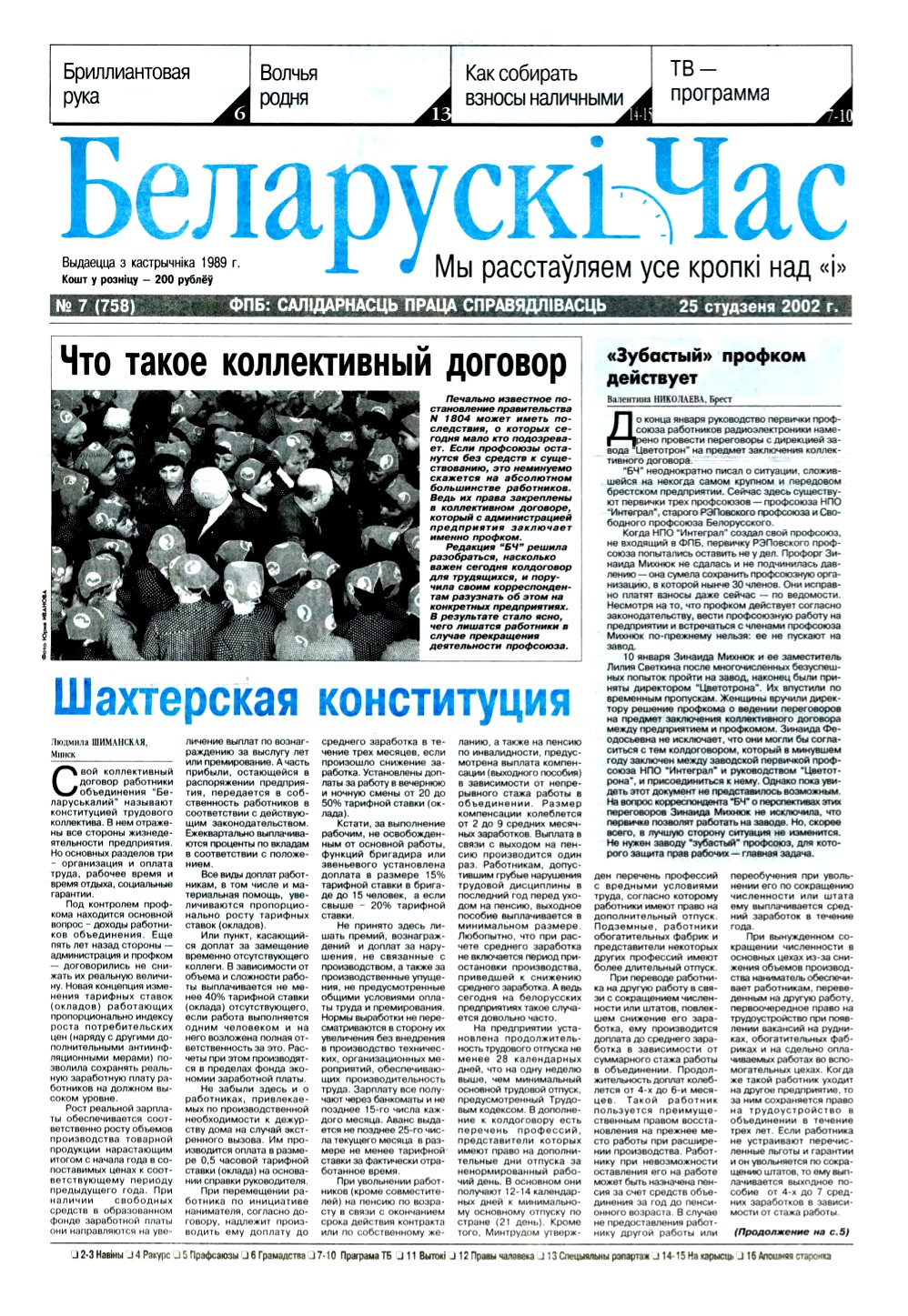 «Беларускі час» — газета савета прафесіянальных саюзаў Беларусі. Заснавальнік: савет Федэрацыі прафсаюзаў Беларусі. Газета выдаецца з 27 кастрычніка 1989 года. Аўтары надрукаваных матэрыялаў нясуць адказнасць за падбор даных, асабістых імён, геаграфічных назваў і іншай інфармацыі, а таксама за тое, калі ў матэрыялах змешчаны даныя, якія не падлягаюць адкрытай публікацыі. Рэдакцыя можа друкаваць артыкулы ў парадку абмеркавання, не падзял... Болей »
