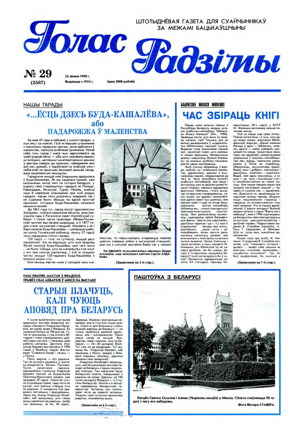 «Голас Радзімы» — штотыднёвая газета для суайчыннікаў за межамі Беларусі. Выдаецца з 6 красавіка 1955 года ў Мінску на беларускай мове штотыднёва. Да студзеня 1960 года называлася «За вяртанне на Радзіму». З сярэдзіны 1970-х гадоў асвятляла жыццё, у тым ліку беларускай эміграцыі. З сярэдзіны 1990-х гадоў адзінае беларускае выданне, якое распаўсюджвалася сярод нацыянальнай дыяспары і ў асяроддзі замежных беларусістаў. Болей »
