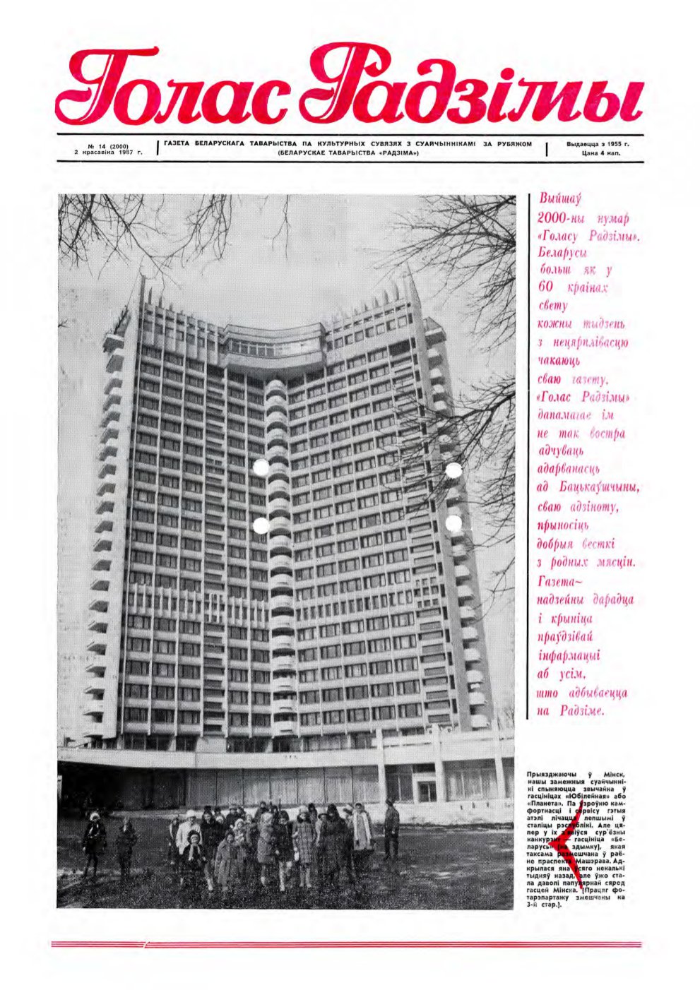 «Голас Радзімы» — штотыднёвая газета для суайчыннікаў за межамі Беларусі. Выдаецца з 6 красавіка 1955 года ў Мінску на беларускай мове штотыднёва. Да студзеня 1960 года называлася «За вяртанне на Радзіму». З сярэдзіны 1970-х гадоў асвятляла жыццё, у тым ліку беларускай эміграцыі. З сярэдзіны 1990-х гадоў адзінае беларускае выданне, якое распаўсюджвалася сярод нацыянальнай дыяспары і ў асяроддзі замежных беларусістаў. More »