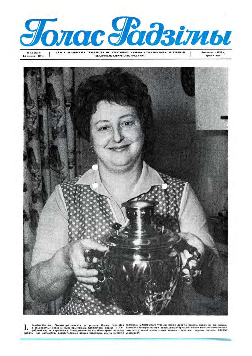 «Голас Радзімы» — штотыднёвая газета для суайчыннікаў за межамі Беларусі. Выдаецца з 6 красавіка 1955 года ў Мінску на беларускай мове штотыднёва. Да студзеня 1960 года называлася «За вяртанне на Радзіму». З сярэдзіны 1970-х гадоў асвятляла жыццё, у тым ліку беларускай эміграцыі. З сярэдзіны 1990-х гадоў адзінае беларускае выданне, якое распаўсюджвалася сярод нацыянальнай дыяспары і ў асяроддзі замежных беларусістаў. Болей »