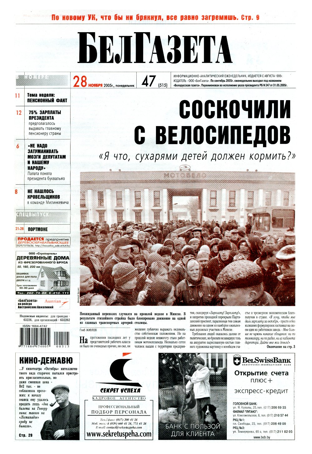 Інфармацыйна-аналітычная рускамоўная газета, выходзіць штотыдзень у Беларусі. Да верасня 2005 года — «Беларуская газета». Займаецца незалежным асвятленнем падзей эканамічнага, унутрыпалітычнага, дзелавога, культурнага, грамадскага, міжнароднага жыцця Беларусі і блізкага замежжа (Расія, Украіна, краіны Балтыі). Асноўная тэматыка: дзяржава, палітыка, эканоміка, бізнэс, кампаніі і рынкі, грамадства, здарэнні, крымінал, шоу-бізнэс, культура... Болей »