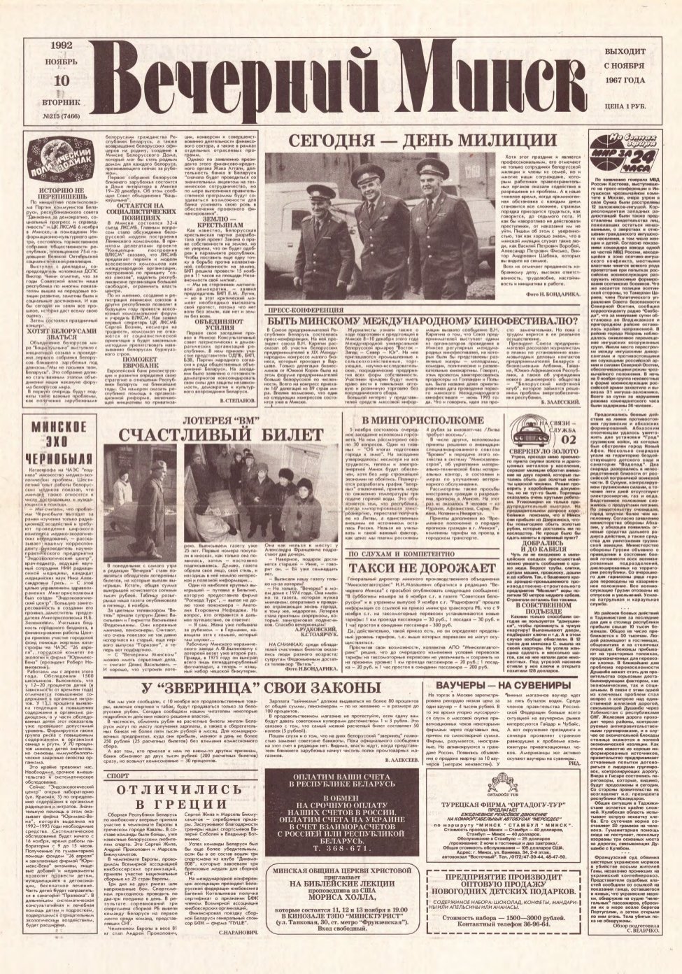 «Вечерний Минск» — выходит з ноября 1967 года. Учредитель: трудовой коллектив редакции газеты «Вечерний Минск». Газета издается на русском и белорусском языках, выходит 5 раз в неделю, кроме субботы и воскресенья — 250 раз в году. Болей »