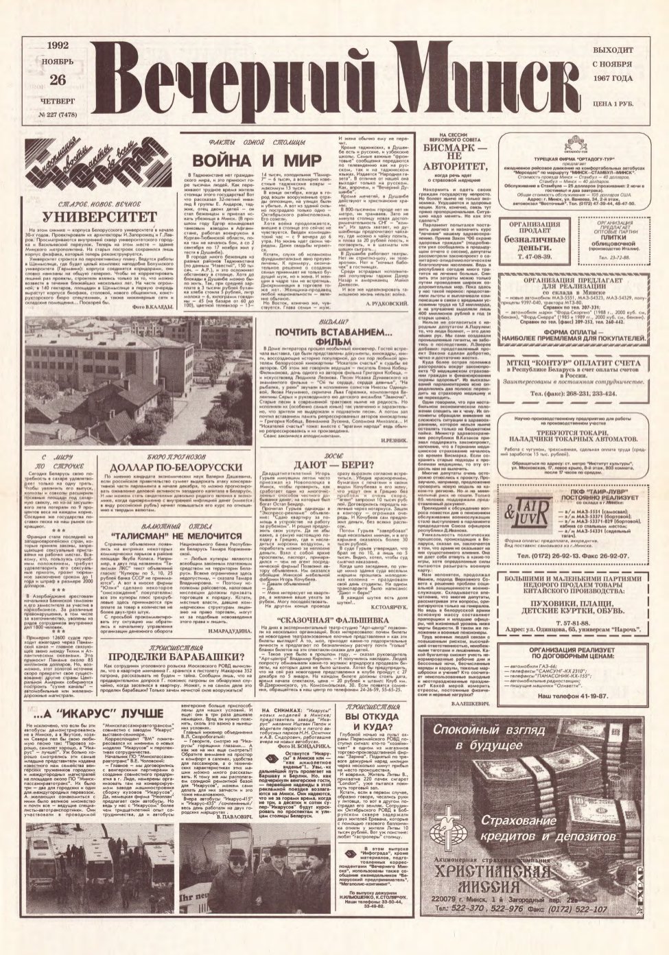 Вечерний Минск, 227 (7478) 1992
