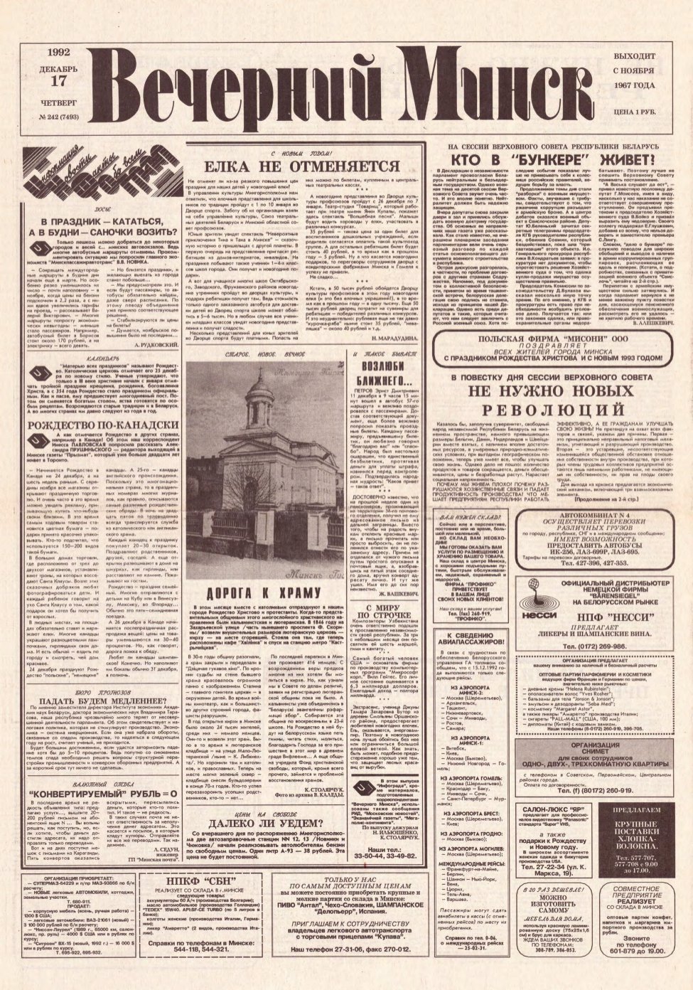 «Вечерний Минск» — выходит з ноября 1967 года. Учредитель: трудовой коллектив редакции газеты «Вечерний Минск». Газета издается на русском и белорусском языках, выходит 5 раз в неделю, кроме субботы и воскресенья — 250 раз в году. Болей »