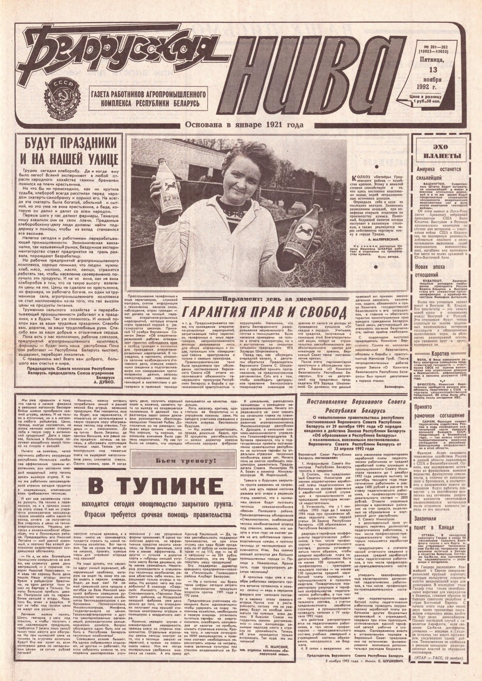 «Белорусская нива» — газета работников Агропромышленного комплекса Республики Беларусь. Учредители: Совет Министров Республики Беларусь и коллектив редакции «Белорусской нивы». За час існавання выданне не раз мяняла назву, мову, арфаграфічныя прынцыпы: спачатку называлася “Белорусская деревня” (на рускай мове), з 1922 г. выходзіла як дадатак да газеты “Звязда”, у 1924 г. яна стала самастойнай і называлася “Беларуская вёска” (на беларуск... Болей »